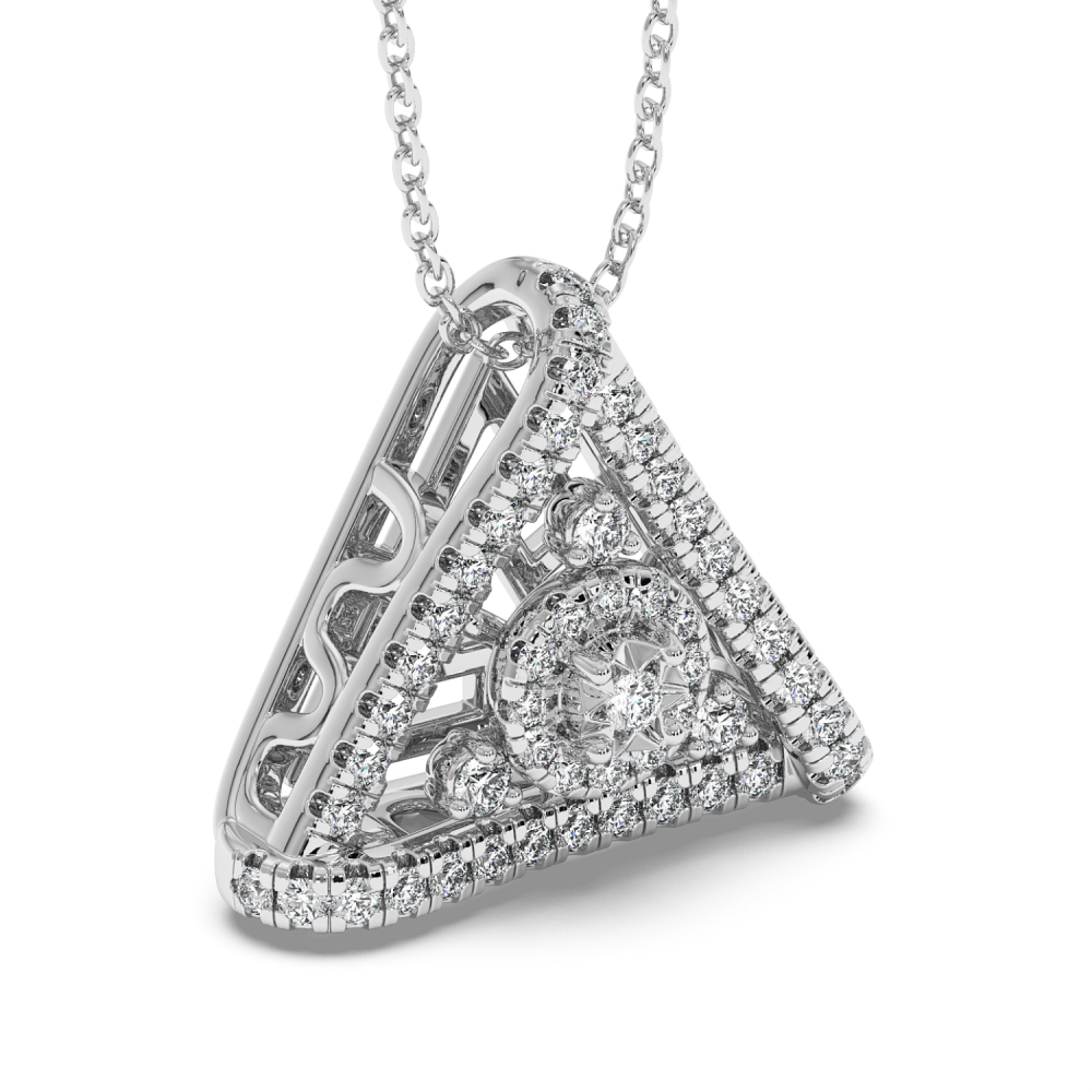 Pandantiv din aur alb de 14K, cu diamante de 0.37ct. Greutatea pandantivului este de aproximativ 5.50 grame. Accesati "SPECIFICATII" pentru mai multe detalii despre acest produs.