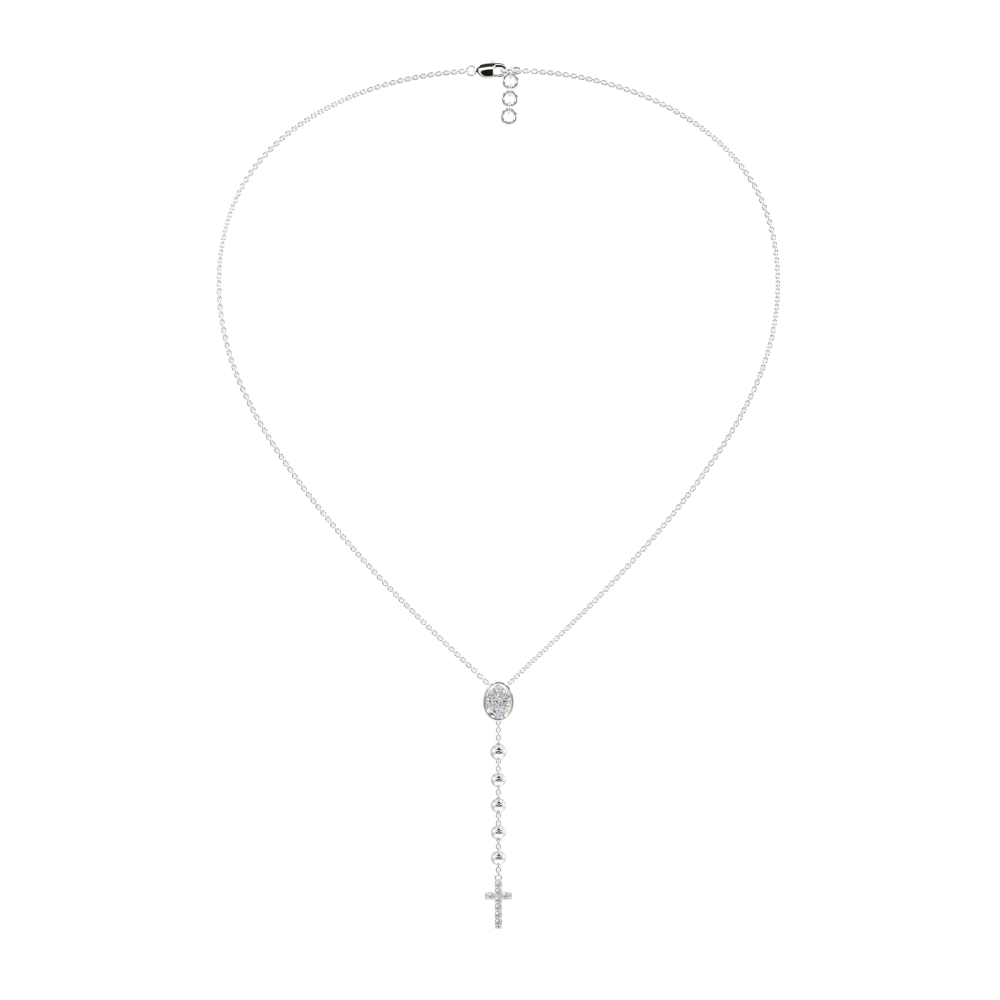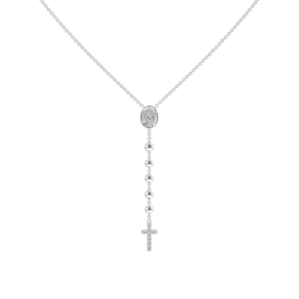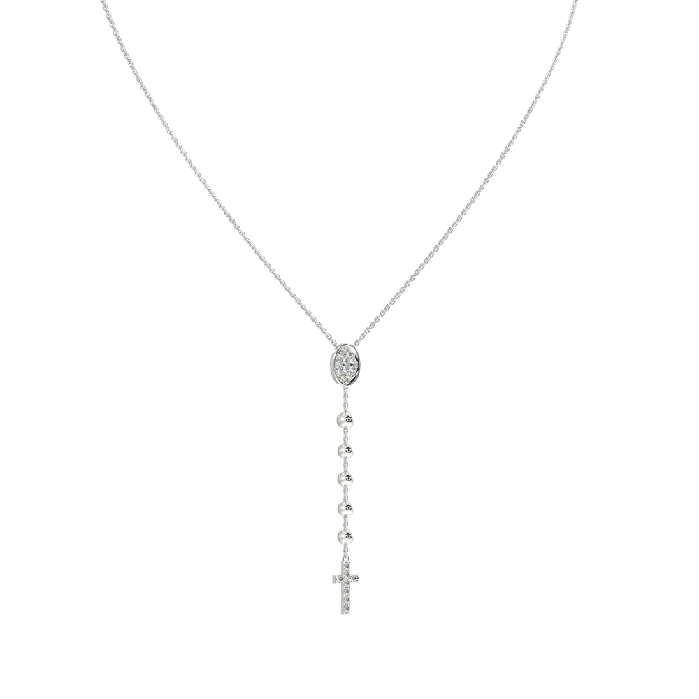 Pandantiv din aur alb de 14 K, cu diamante de 0.41 ct. Greutatea aproximativa a colierului este de 8 grame.