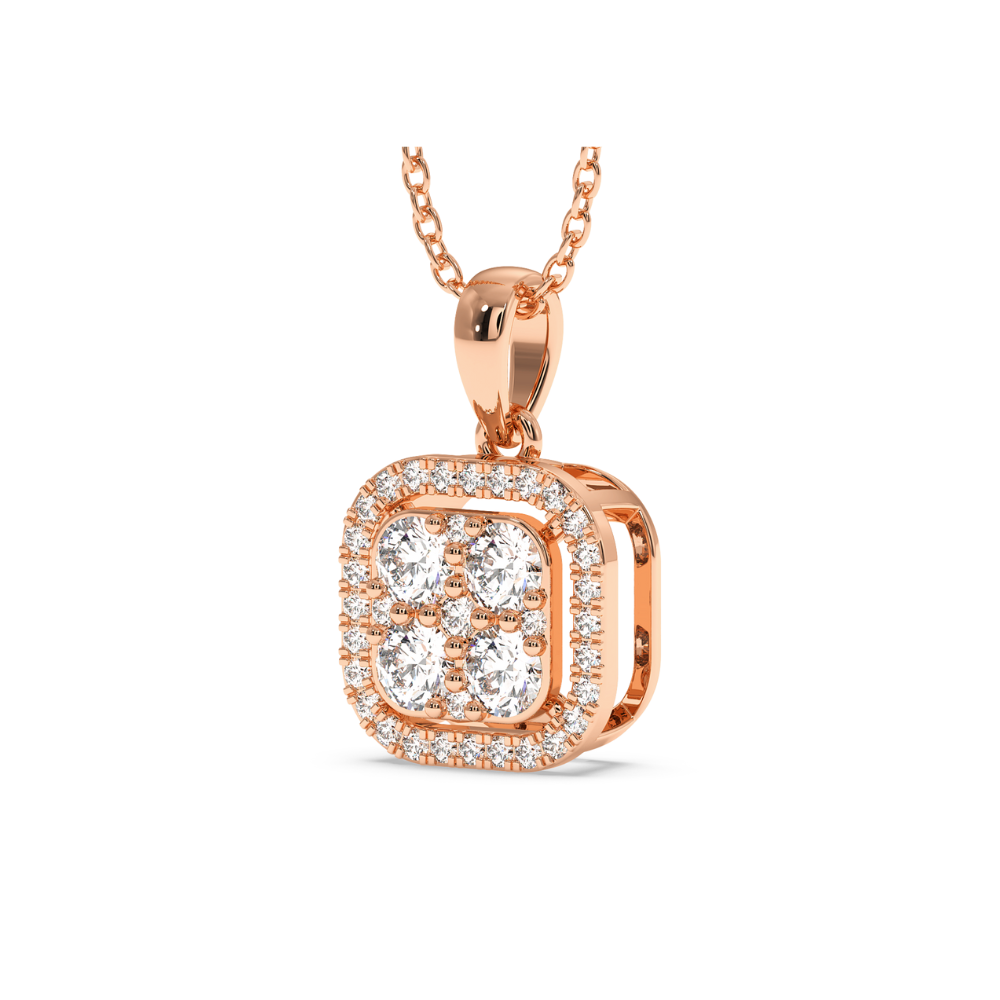 Pandantiv din aur rose de 14 K, cu diamante de 0.42 ct. Greutatea pandantivului este de 3.35 grame.