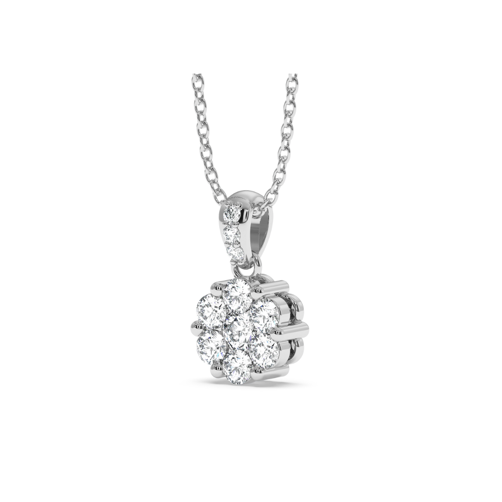 Pandantiv din aur alb de 14K, cu diamante de 0.43 ct. Greutatea colierului este de apx 3.00 grame. Pandantivul se poate realiza din aur alb, galben sau rose.