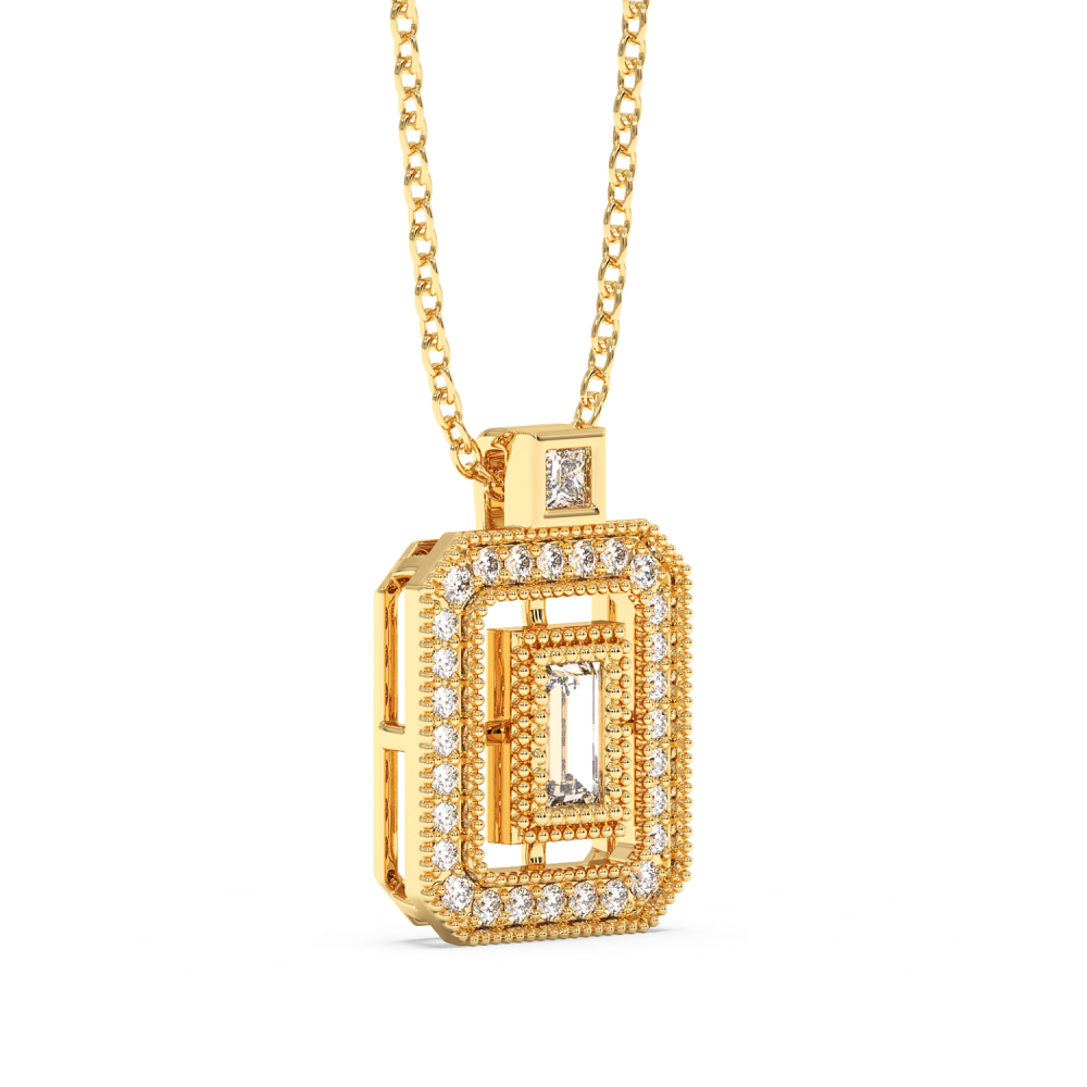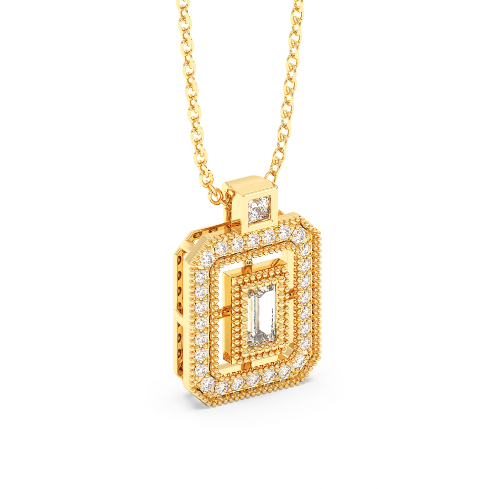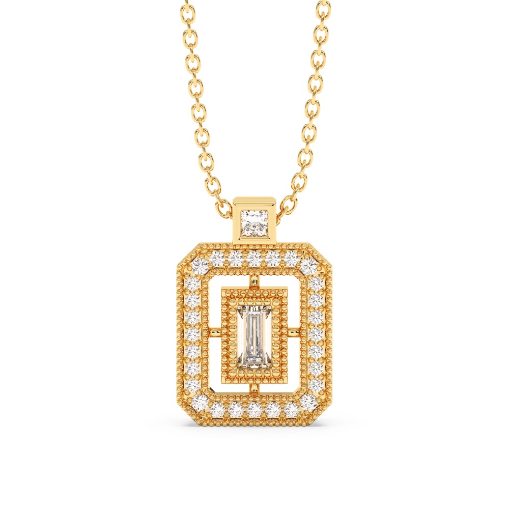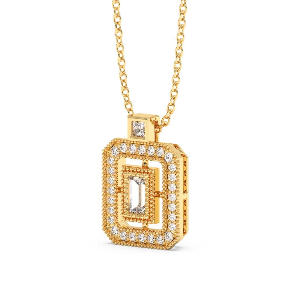 Pandantiv din aur alb de 14 K, cu diamante de 0.43 ct. Greutatea aproximativa a colierului este de aprox. 4 grame.