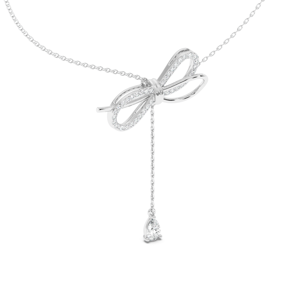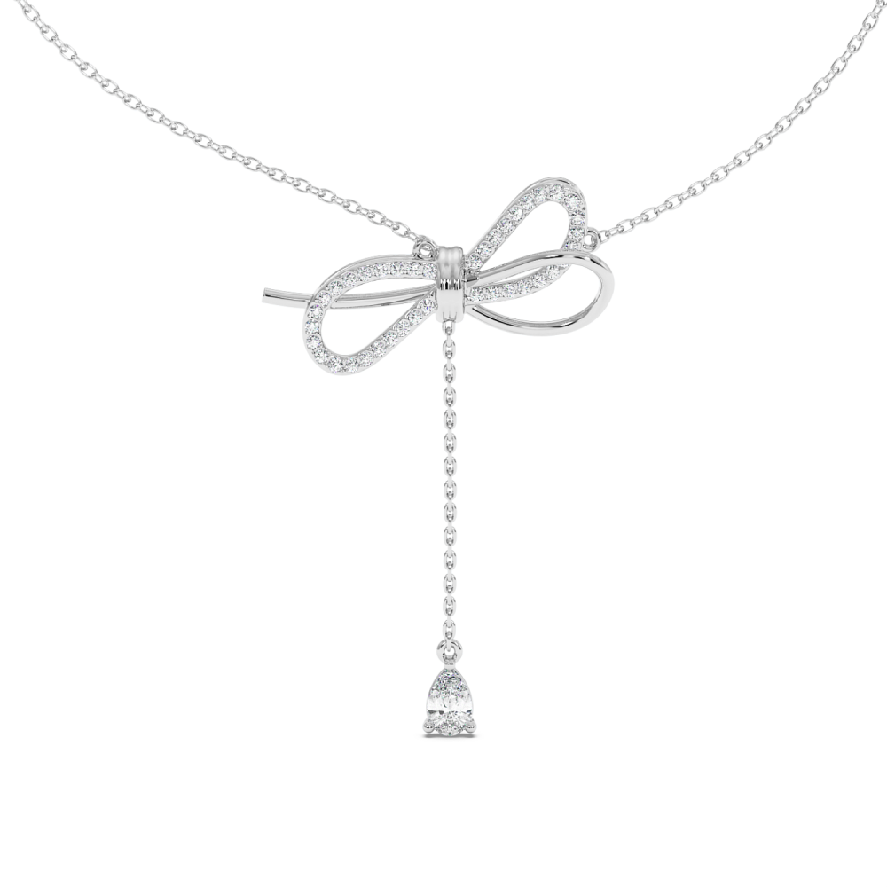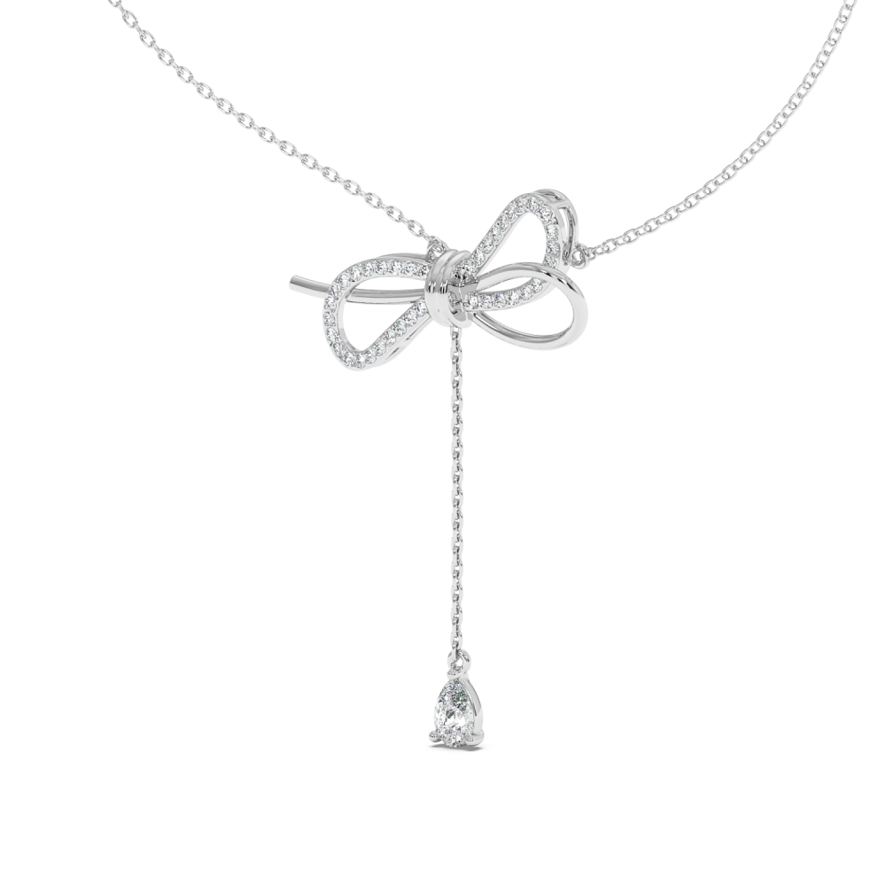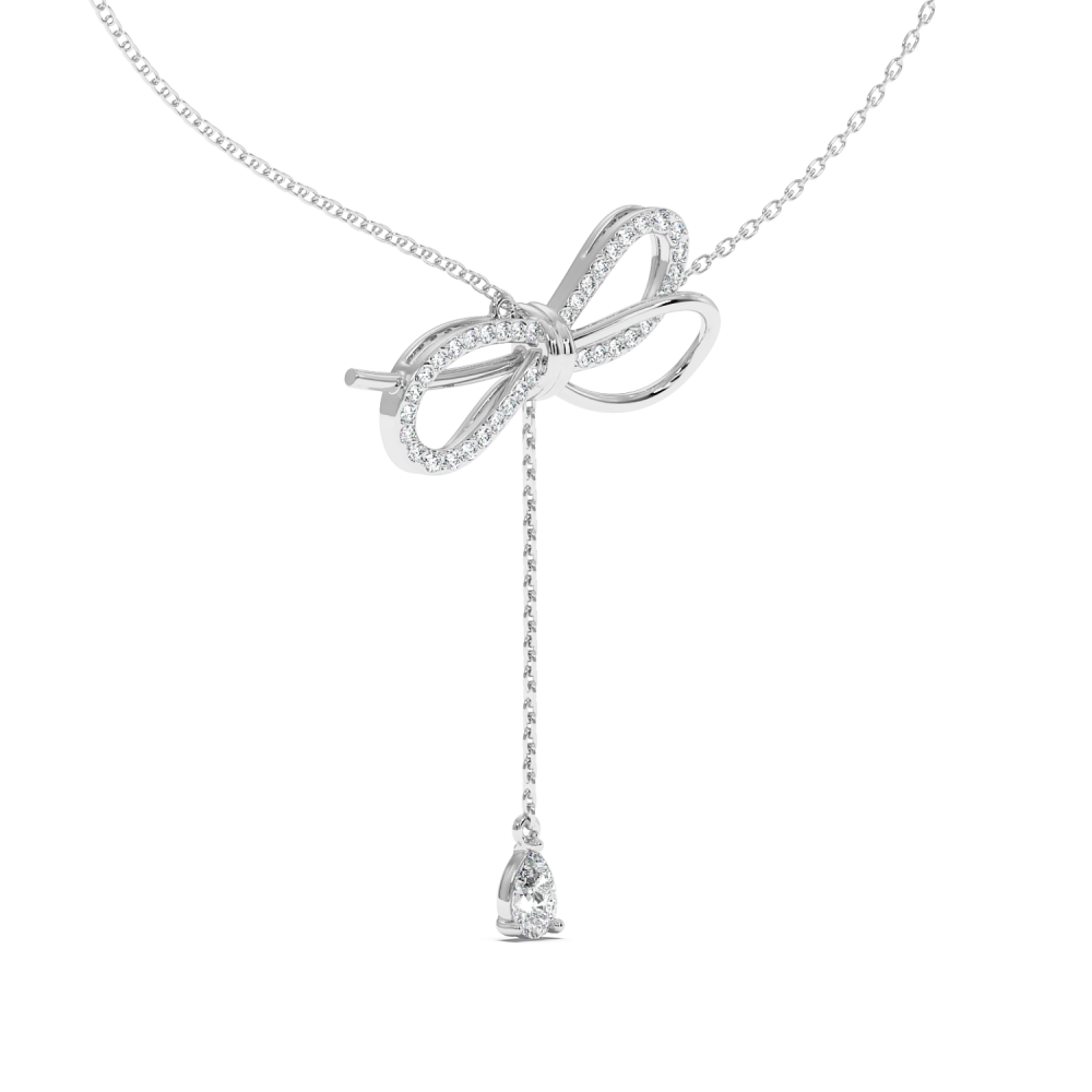 Pandantiv din aur alb de 14k, diamante Rotunde de 0.24 carate si diamante Pear de 0.25 carate. Greutatea pandantului este de 4.21 grame.