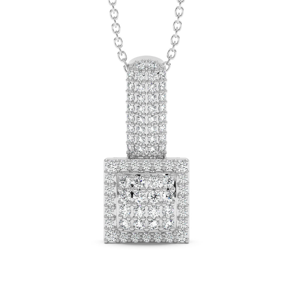 Pandantiv din aur alb de 14K, cu diamante de 0.51ct. Greutatea pandantivului este de aproximativ 4.50 grame. Lungimea pandativului este de 2.10 cm.