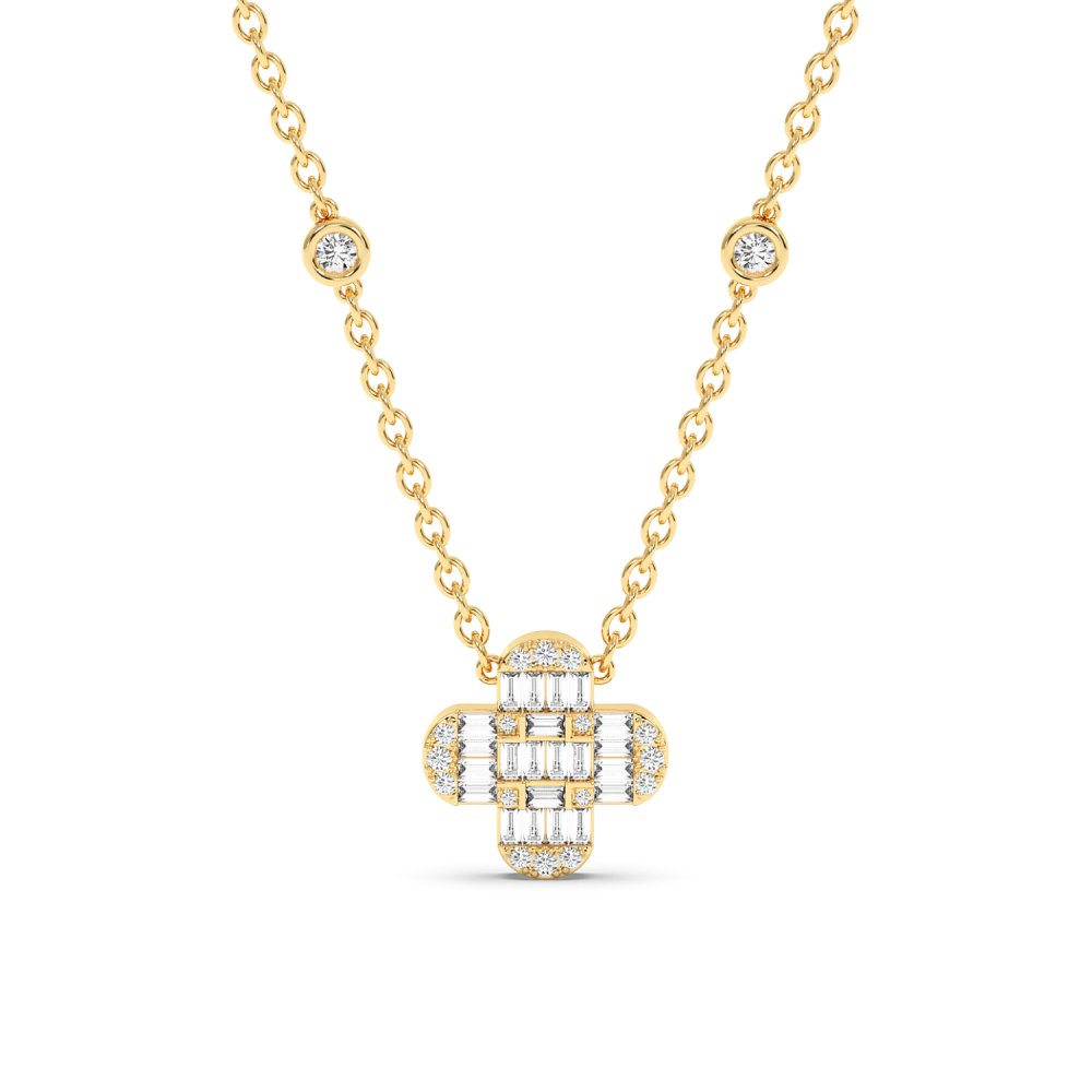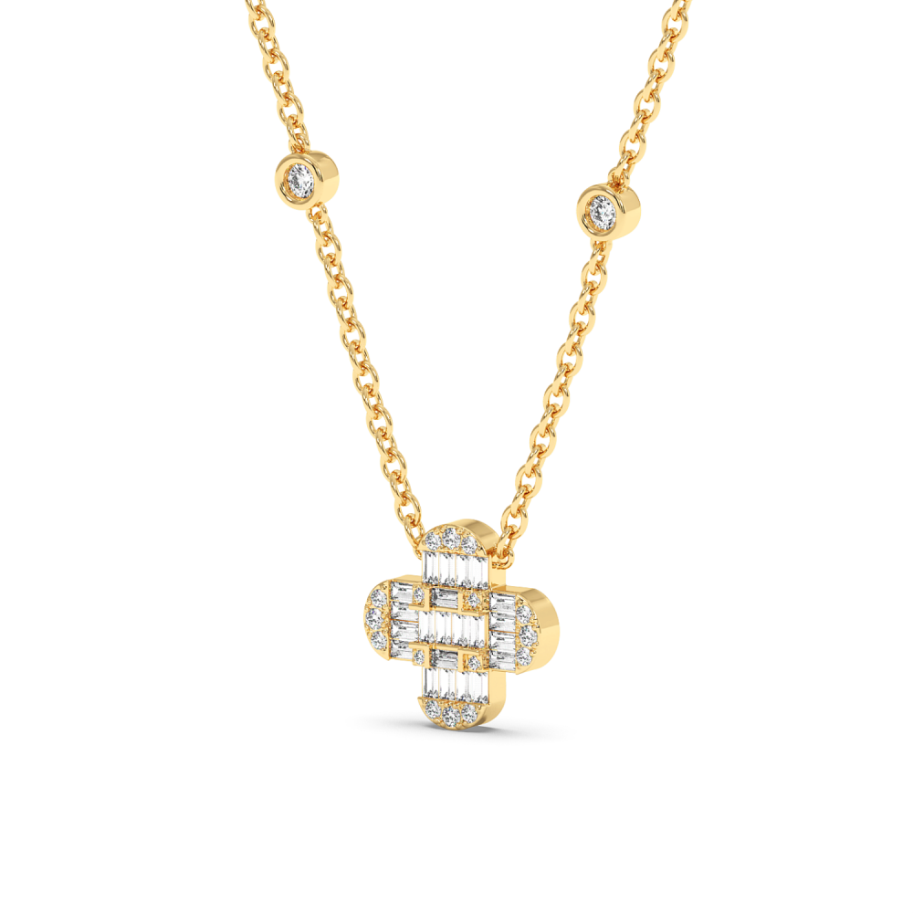 Pandantiv din aur de 14 K, cu diamante de 0.60 ct. Greutatea colierului este de 4,38 grame.
