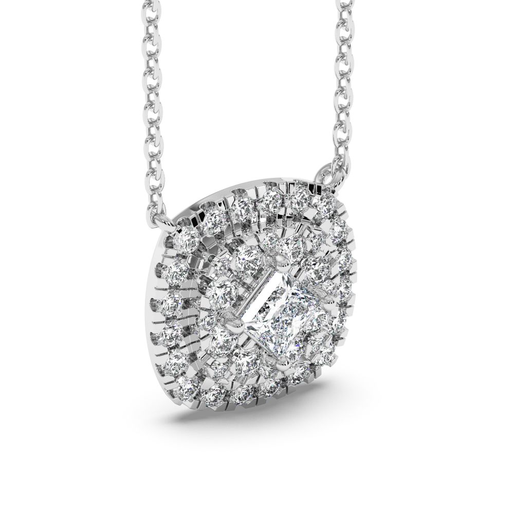 Pandantiv din aur alb de 14k, diamante de 0.61ct. Greutatea pandantului este de aproximativ 2.50 grame.