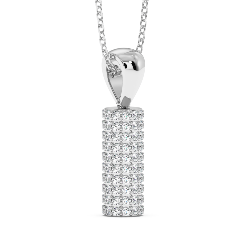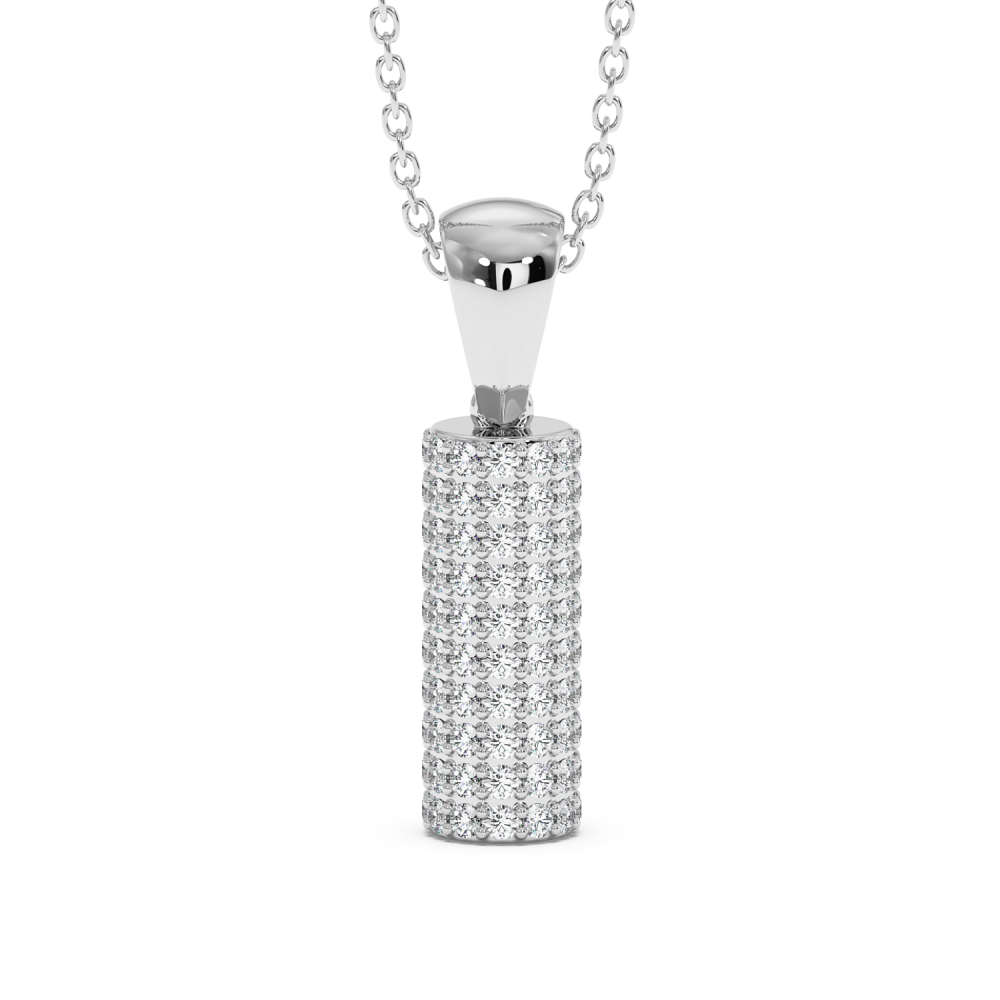 Pandantiv din aur alb de 14K, cu diamante de 0.78ct. Greutatea pandantivului este de aproximativ 4.60 grame. Lungimea pandativului este de 2.20 cm.