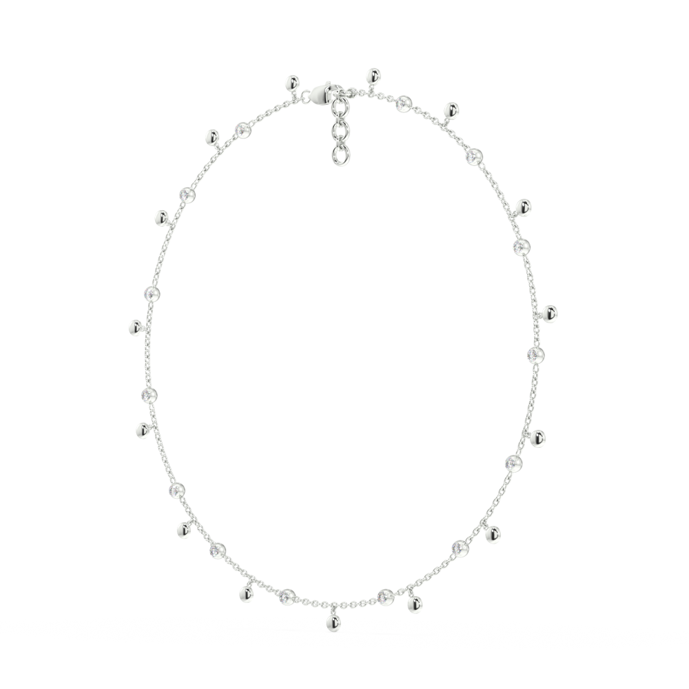 Pandantiv din aur alb de 14 K, cu diamante de 0.82 ct. Greutatea aproximativa a colierului este de 10 grame.