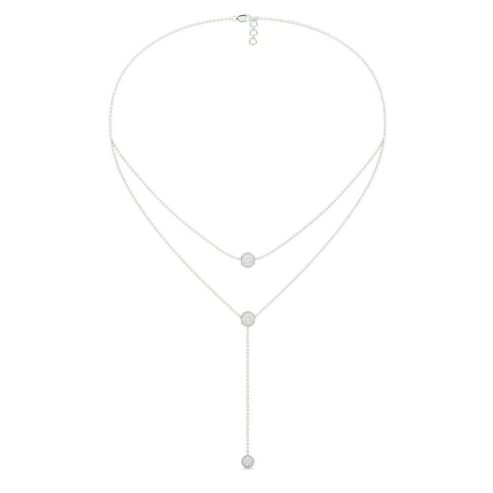 Pandantiv din aur alb de 14 K, cu diamante de 0.75 ct. Greutatea aproximativa a colierului este de apx. 5.5 grame.