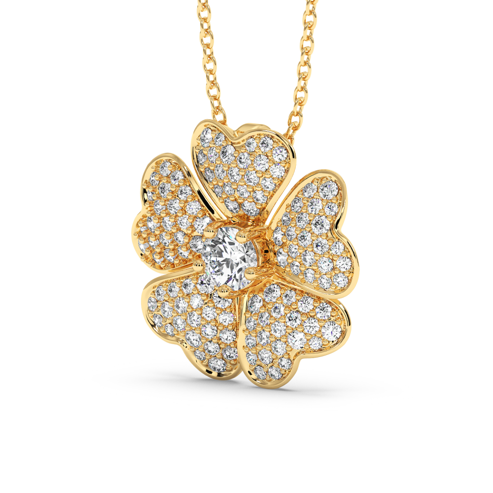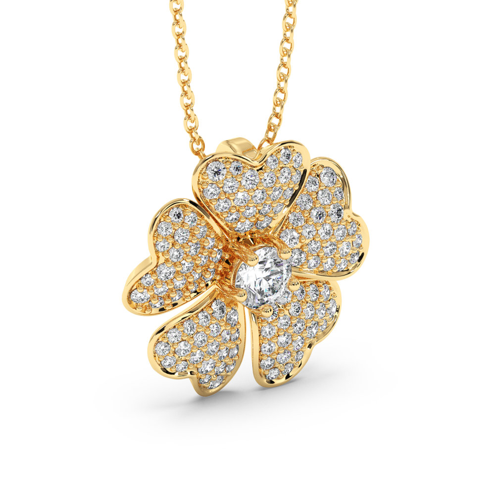 Pandantiv din aur de 14 K, cu diamante de 1.01 ct. Greutatea pandantivului este de aproximativ 4.00 grame, diametrul este de 1.7cm.