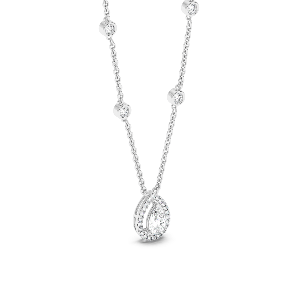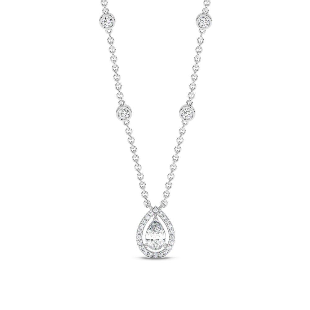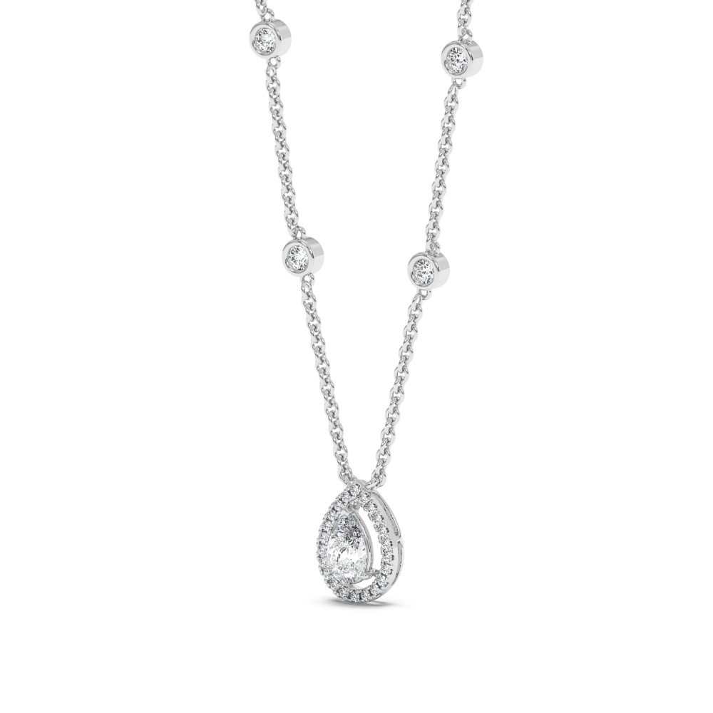 Pandantiv din aur alb de 14k, diamante Rotunde de 0.54 carate si diamant Pear de 0.56 carate. Greutatea pandantului este de 5.62 grame.