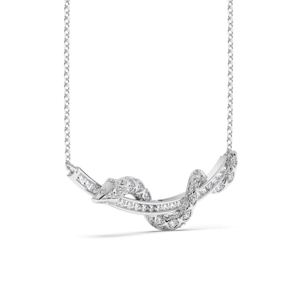 Pandantiv din aur alb de 14K, cu diamante de 1.10ct. Greutatea pandantivului este de aproximativ 8.50 grame.