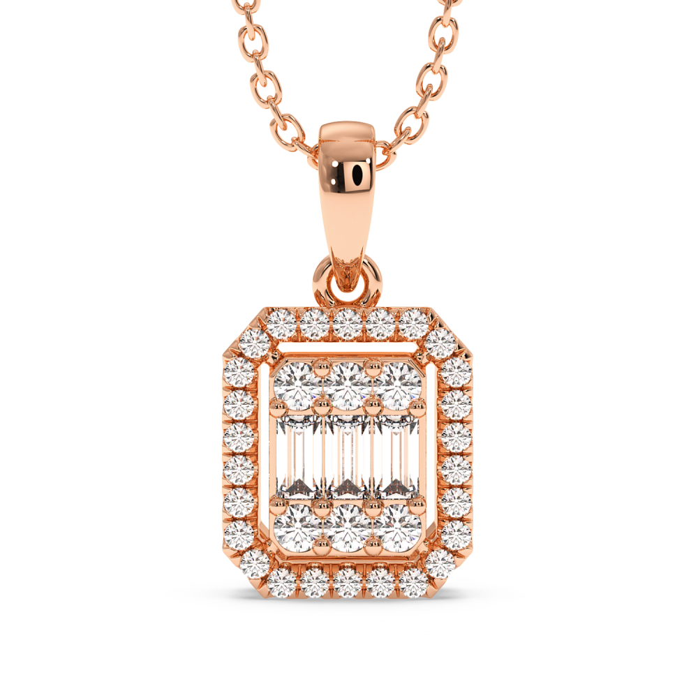 Pandantiv cu diamante rotunde de 0.16 ct si diamante bagheta de 0.04 ct