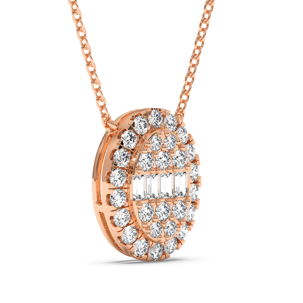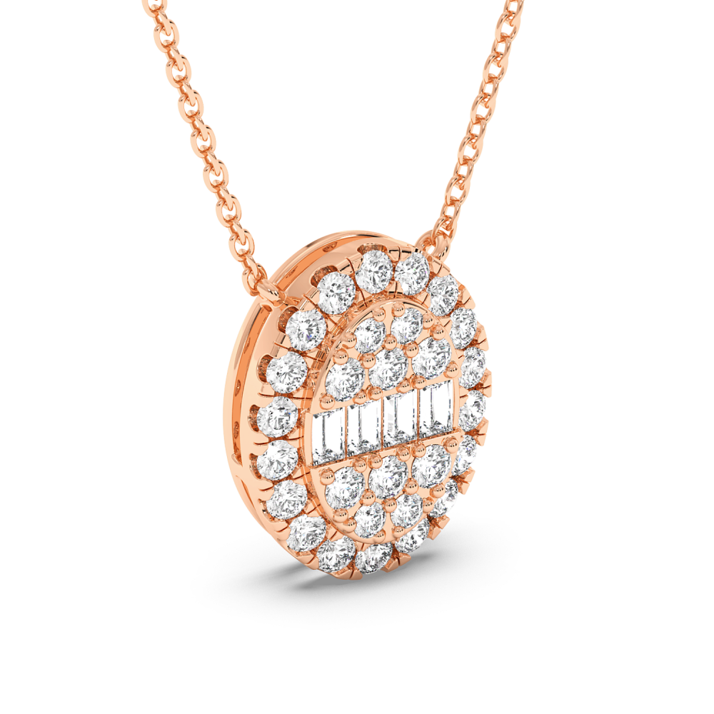 Pandantiv cu diamante rotunde de 0.58 ct si diamante bagheta de 0.10 ct