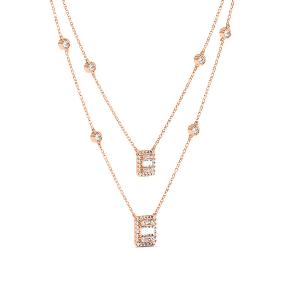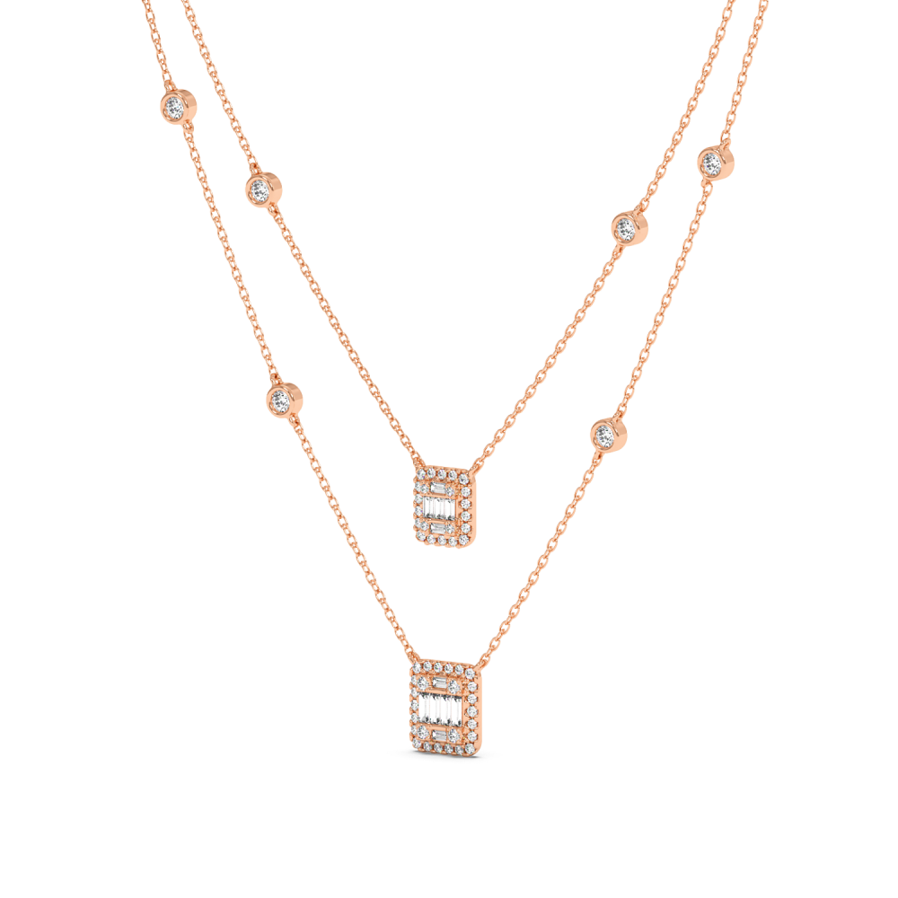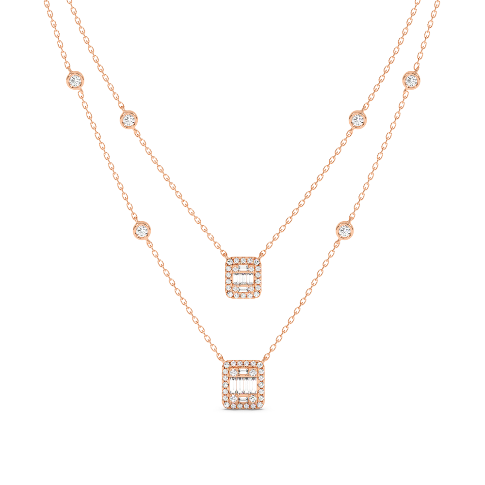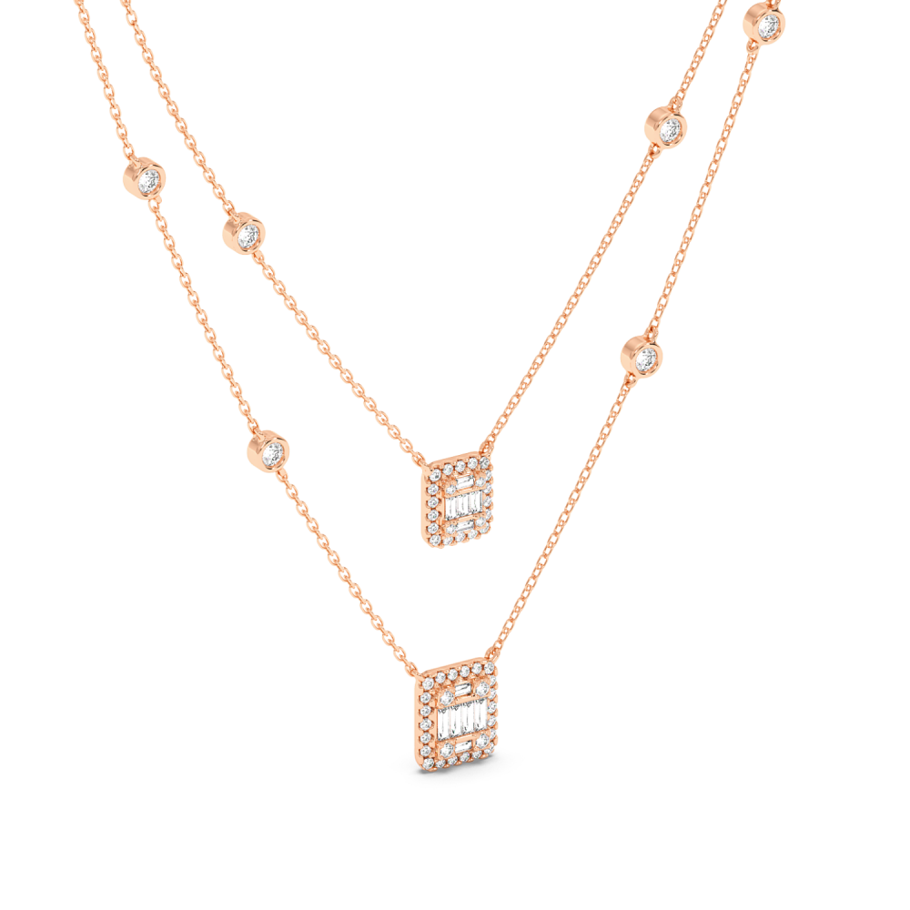 Pandantiv din aur de 14K, cu diamante rotunde de 0.75ct si diamante Bageta de 0.42ct. Greutatea este de aproximativ 5.15 grame. Pandantivul se poate face pe comanda si din aur de 18K, galben sau rose. Gramajele si caratajele sunt aproximative.