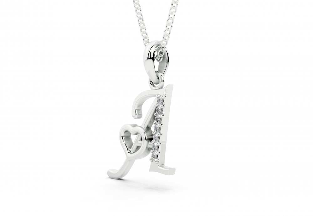 Pandantiv initiala A din aur alb de 14 K, cu diamante de 0.03ct. Greutatea aproximativa a pandantivului este de 2.60 grame.