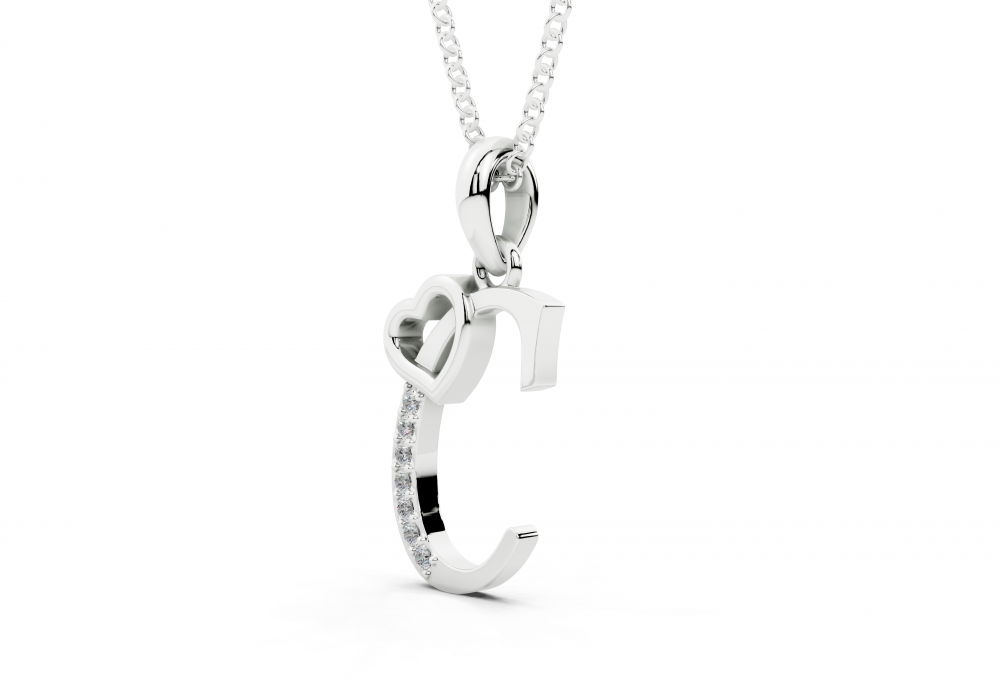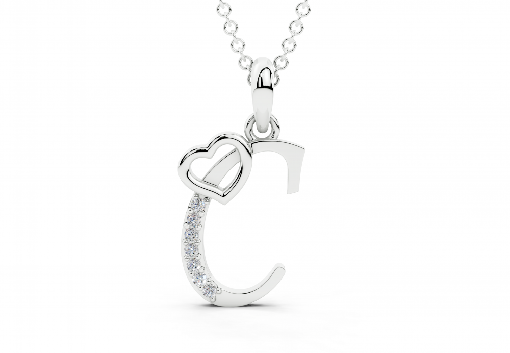 Pandantiv initiala C din aur alb de 14 K, cu diamante de 0.03ct. Greutatea aproximativa a pandantivului este de 2.50 grame.