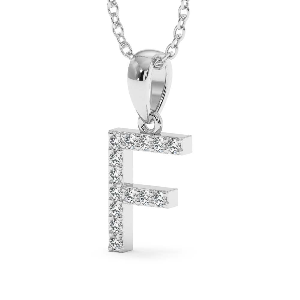 Pandantiv initiala din aur alb de 14 K, cu diamantede 0.06 ct. Greutatea pandantivului este de 1.66 grame.