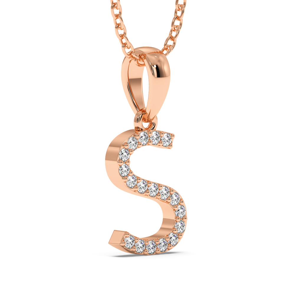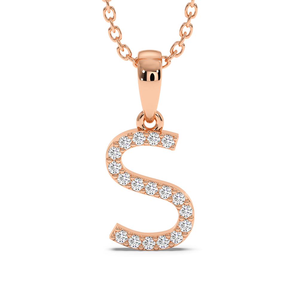 Pandantiv initiala din aur alb de 14 K, cu diamantede 0.07 ct. Greutatea pandantivului este de 1.71 grame.