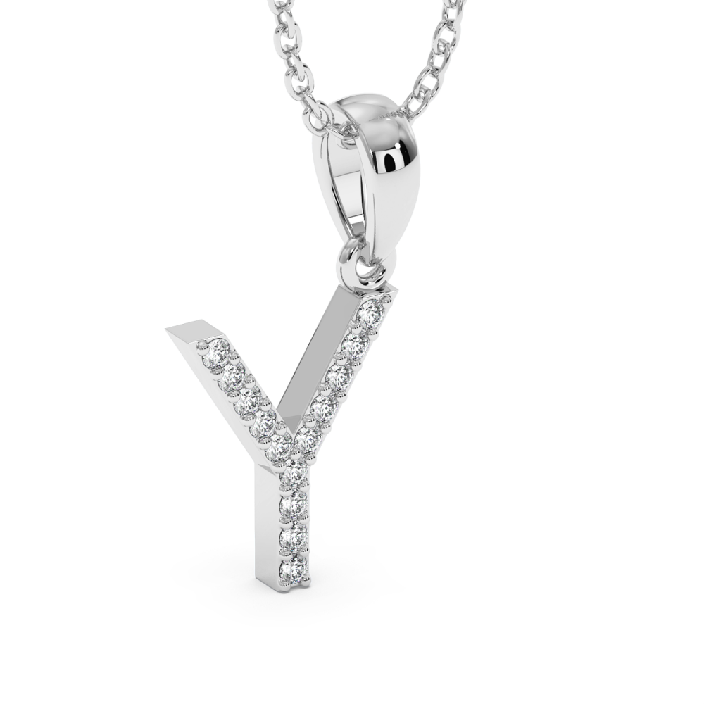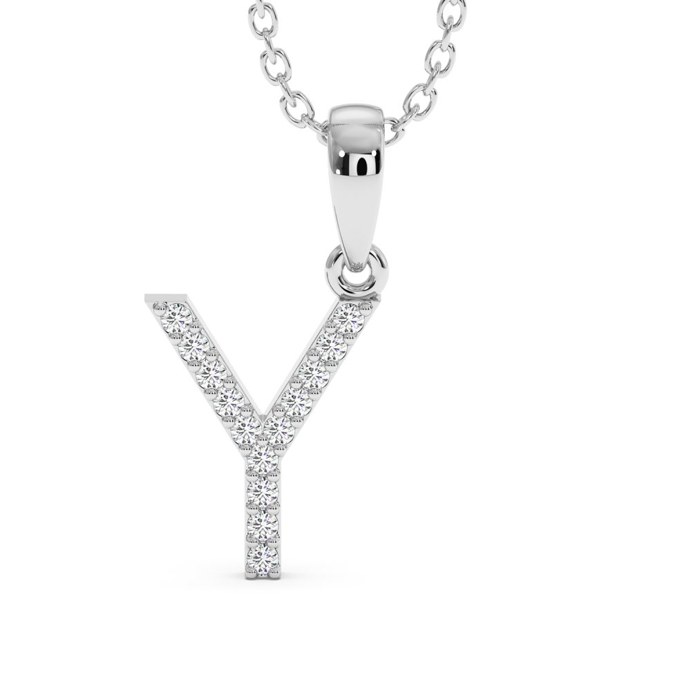 Pandantiv initiala din aur alb de 14 K, cu diamante de 0.07ct. Greutatea aproximativa a pandantivului este de 1.90 grame.