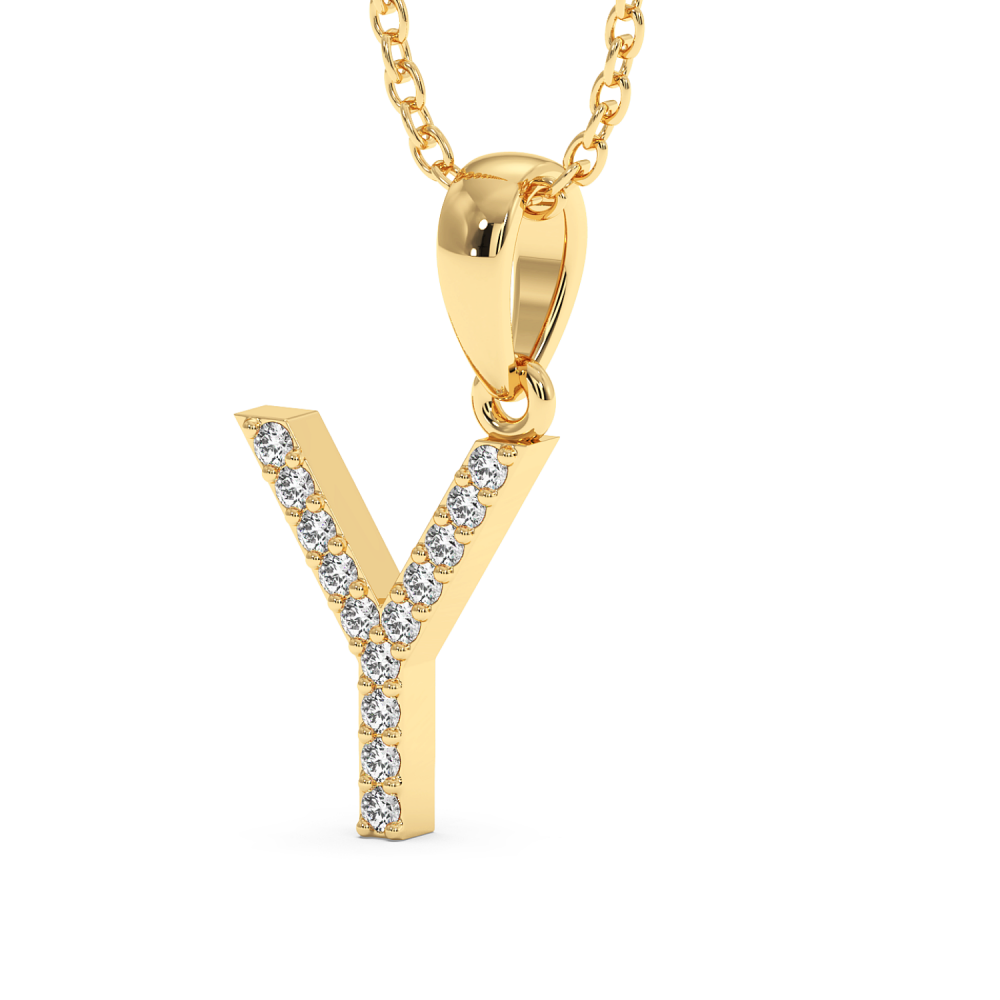 Pandantiv initiala din aur alb de 14 K, cu diamante de 0.07ct. Greutatea aproximativa a pandantivului este de 1.90 grame.