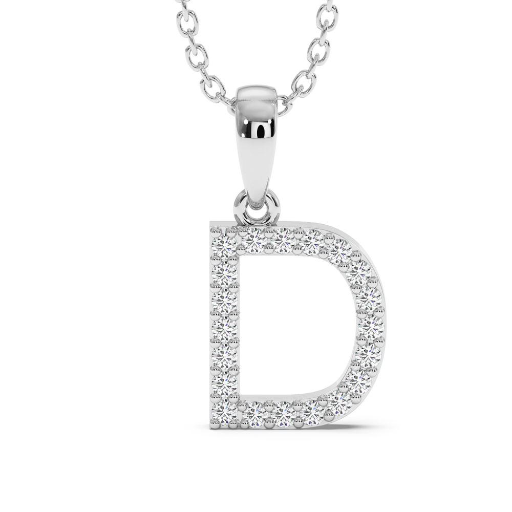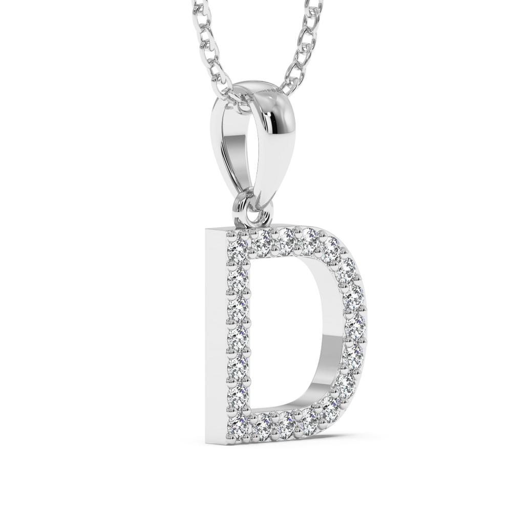 Pandantiv initiala din aur alb de 14 K, cu diamantede 0.08 ct. Greutatea pandantivului este de 1.74 grame.