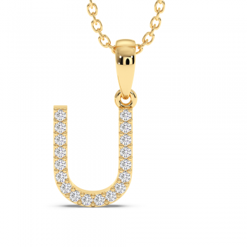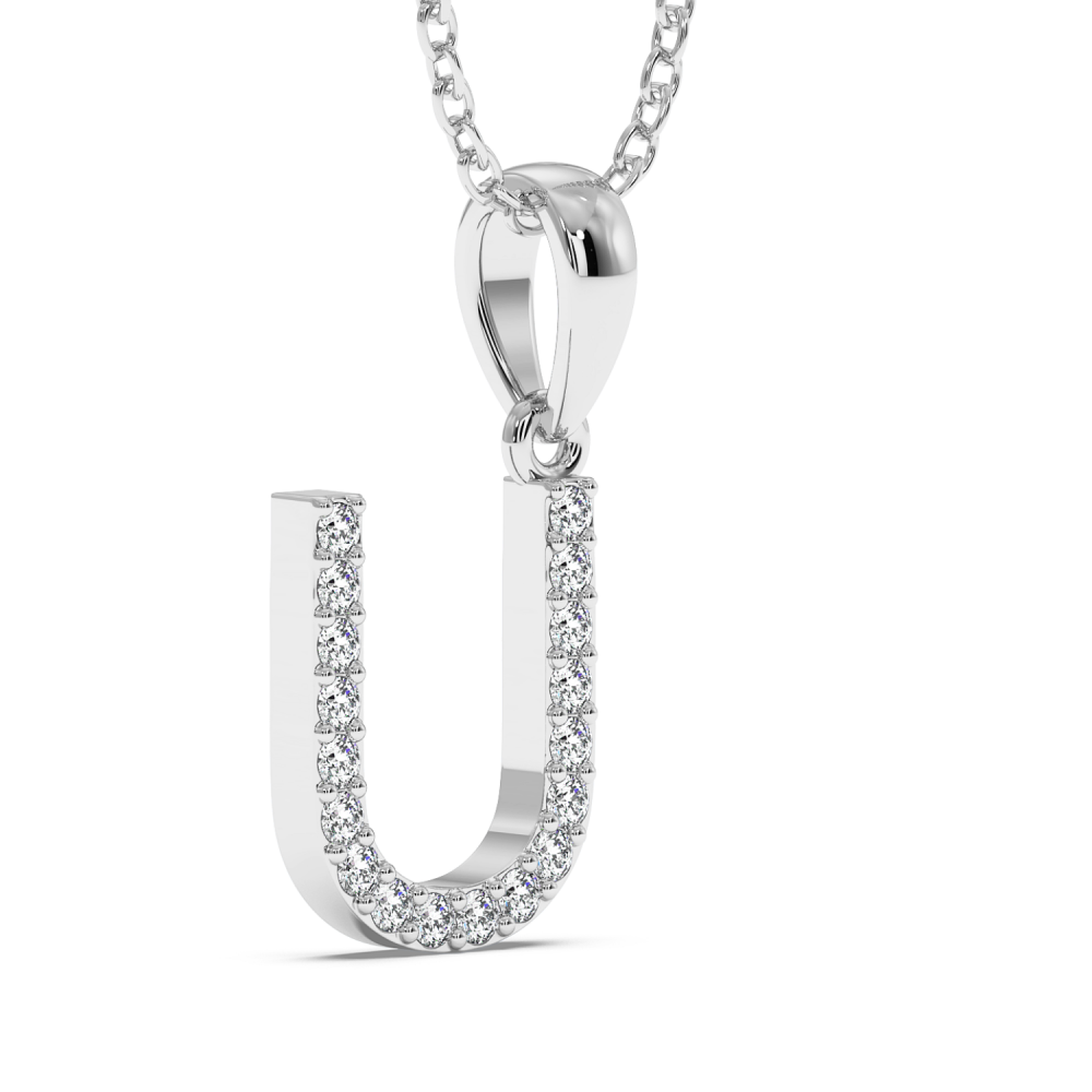 Pandantiv initiala din aur alb de 14 K, cu diamante de 0.10ct. Greutatea aproximativa a pandantivului este de 2.30 grame.
