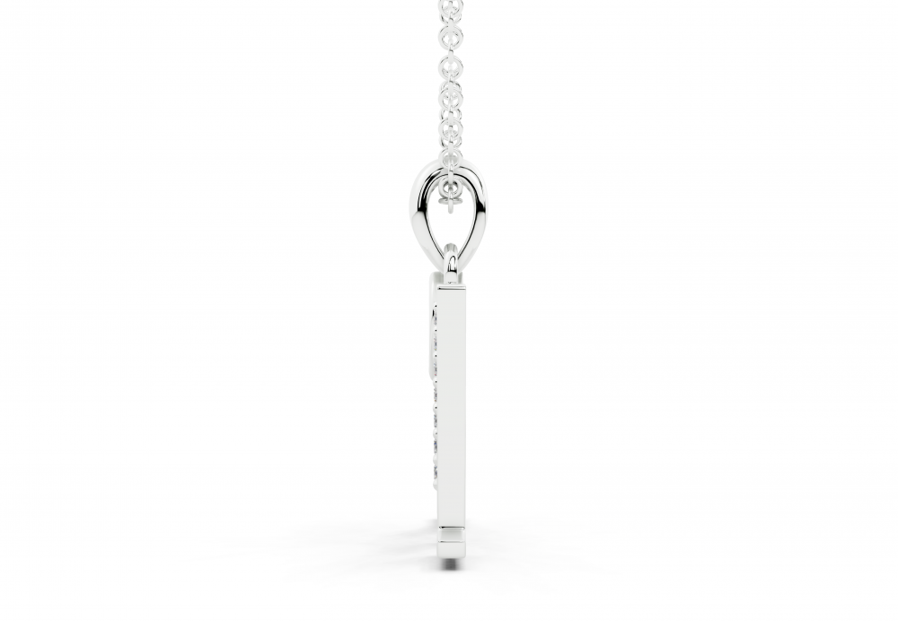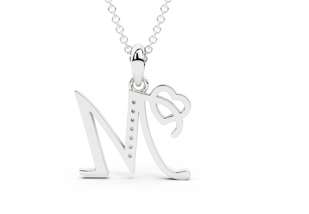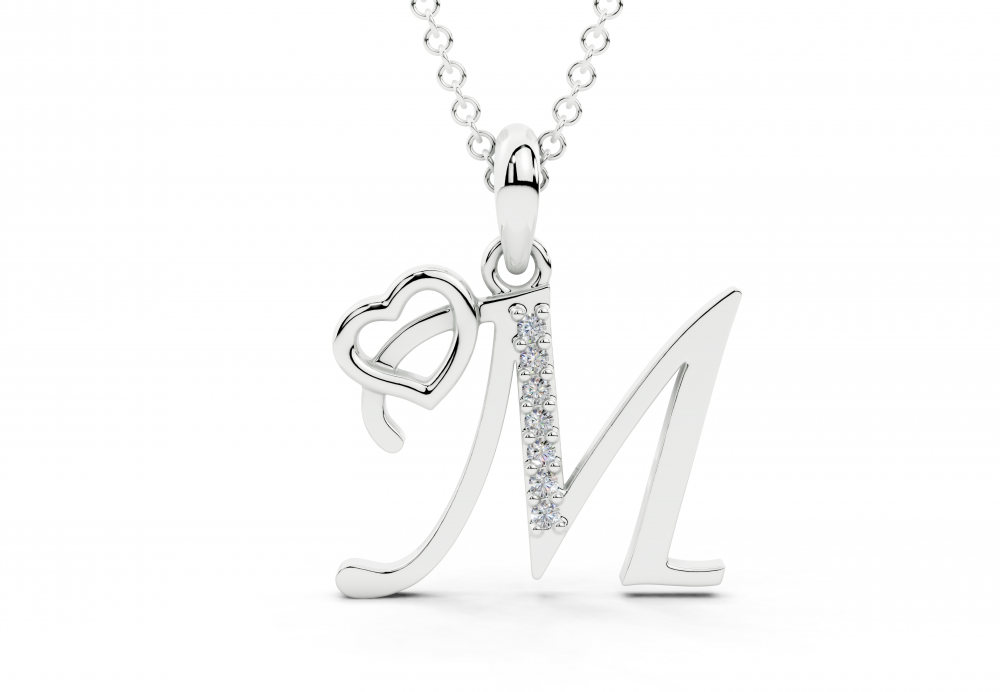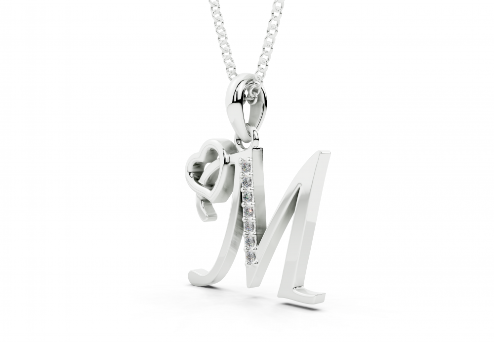 Pandantiv initiala M din aur alb de 14 K, cu diamante de 0.03ct. Greutatea aproximativa a pandantivului este de 2.90 grame.