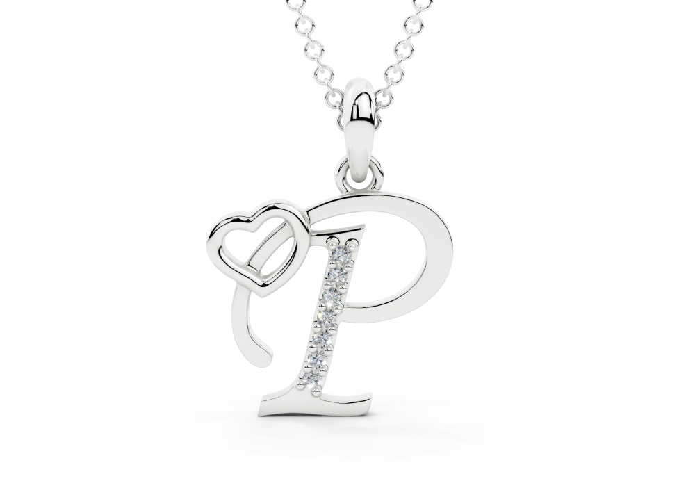 Pandantiv initiala P din aur alb de 14 K, cu diamante de 0.03ct. Greutatea aproximativa a pandantivului este de 2.60 grame.