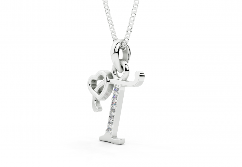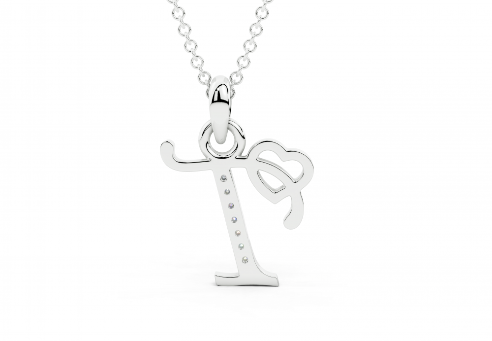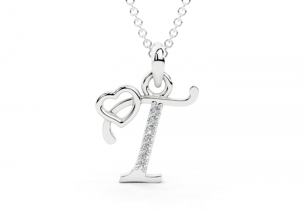 Pandantiv initiala T din aur alb de 14 K, cu diamante de 0.03ct. Greutatea aproximativa a pandantivului este de 2.60 grame.