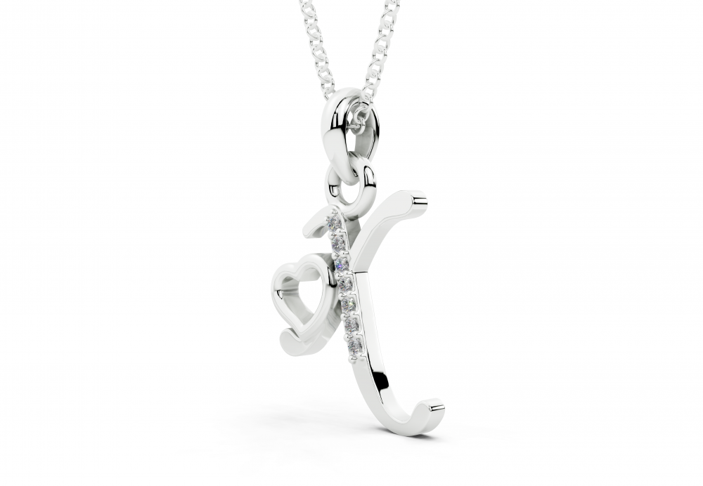 Pandantiv initiala X din aur alb de 14 K, cu diamante de 0.03ct. Greutatea aproximativa a pandantivului este de 3 grame.