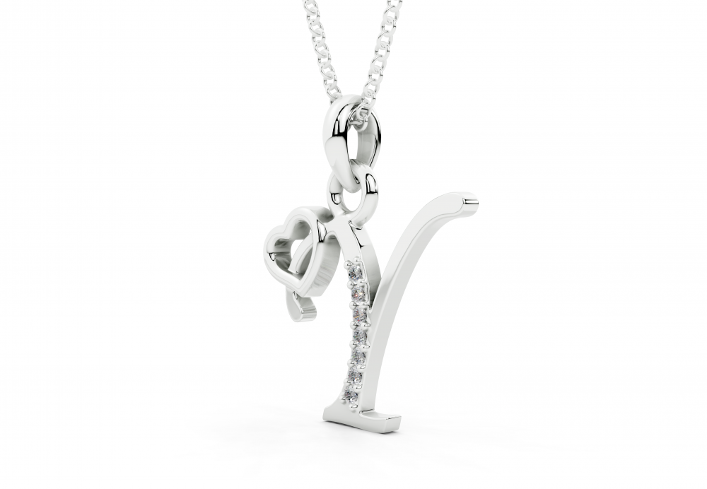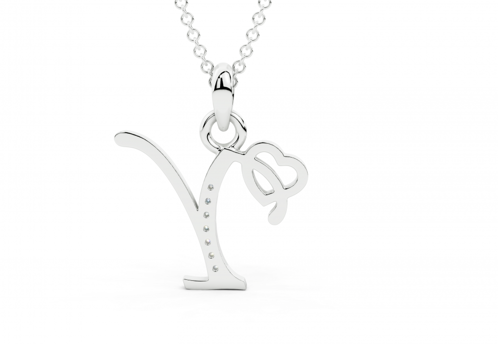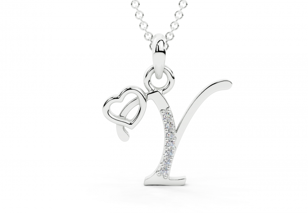 Pandantiv initiala Y din aur alb de 14 K, cu diamante de 0.03ct. Greutatea aproximativa a pandantivului este de 2.70 grame.