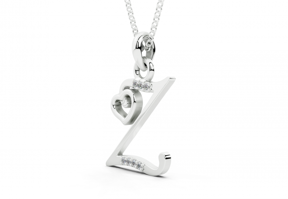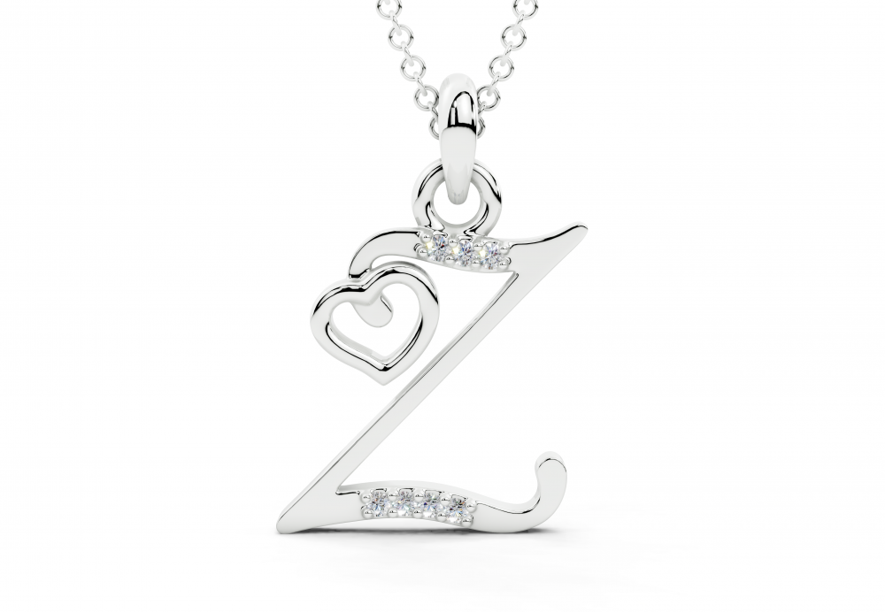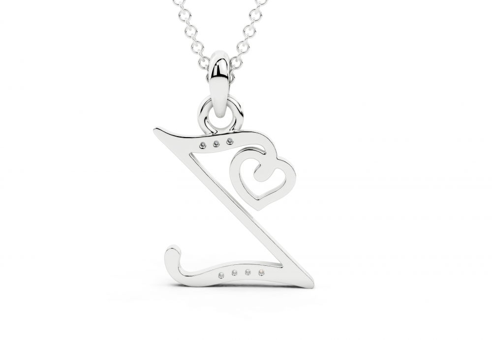 Pandantiv initiala Z din aur alb de 14 K, cu diamante de 0.03ct. Greutatea aproximativa a pandantivului este de 2.80 grame.