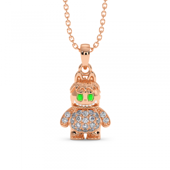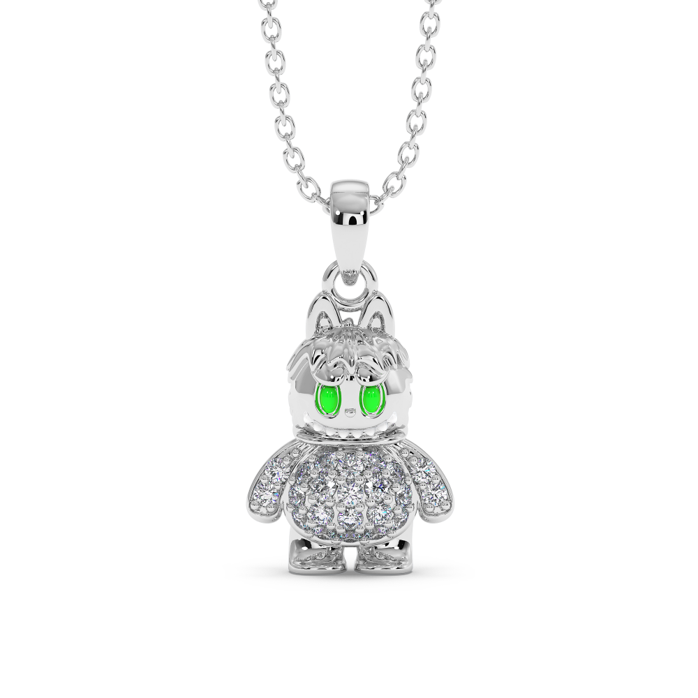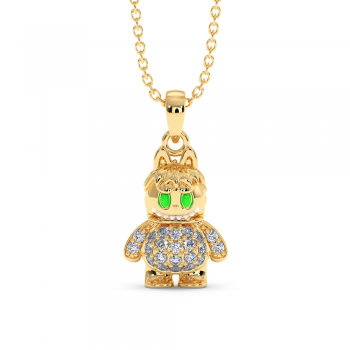 Pandantiv Labubu din aur de 14 K cu diamante de 0.14ct. Greutatea pandantului este de aproximativ 2.90 grame.