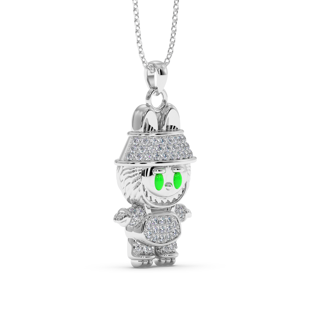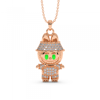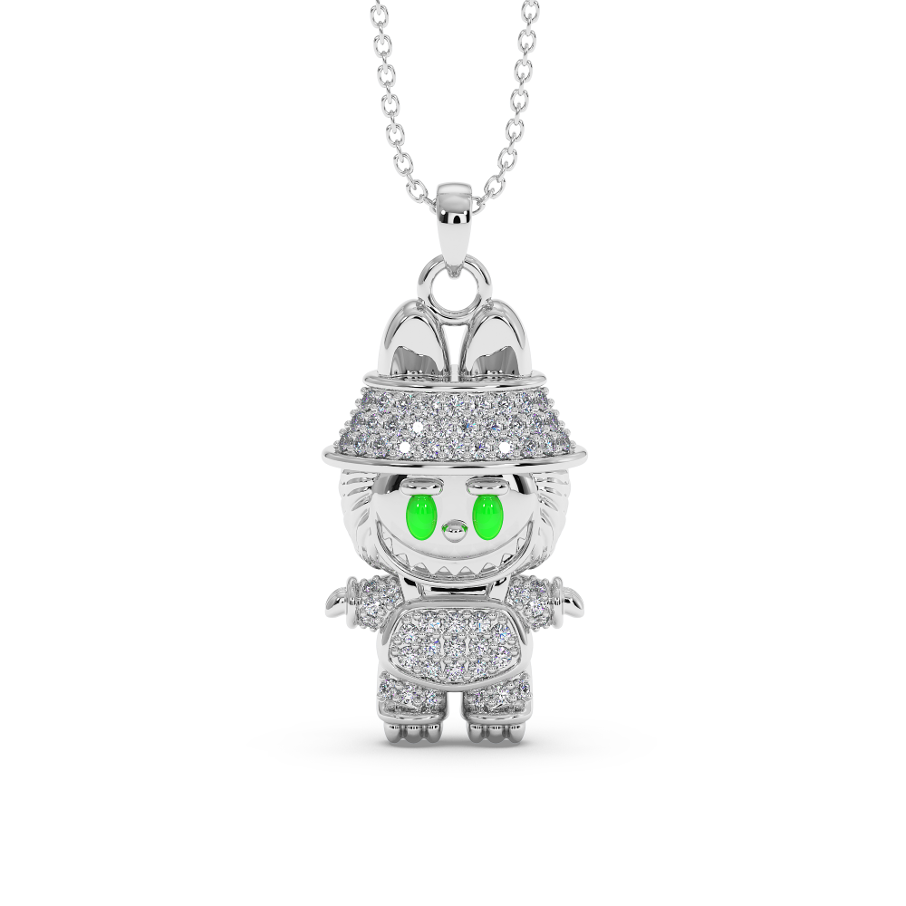 Pandantiv Labubu din aur de 14 K cu diamante de 0.33ct. Greutatea pandantului este de aproximativ 9.50 grame.