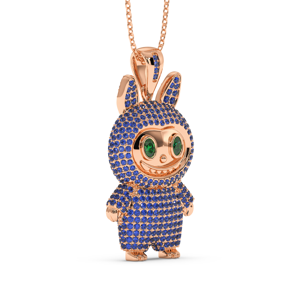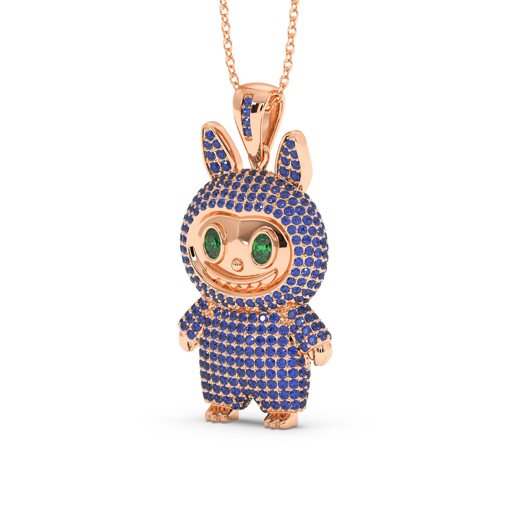 Pandantiv Labubu cu Safire de 0.66ct si Smaralde de 0.20ct