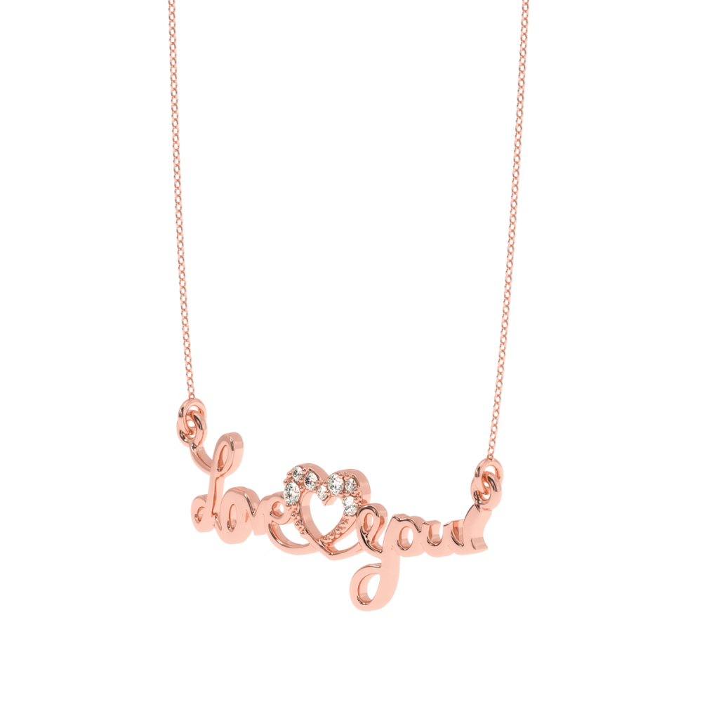 Pandantiv Love din aur de 14k, diamante de 0.06ct. Greutatea pandantului este de aproximativ 2.70 grame. Latimea pandantului este de 1.3cm. Lungimea lantului este de 2cm.