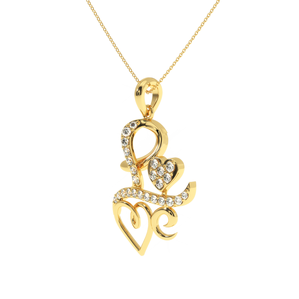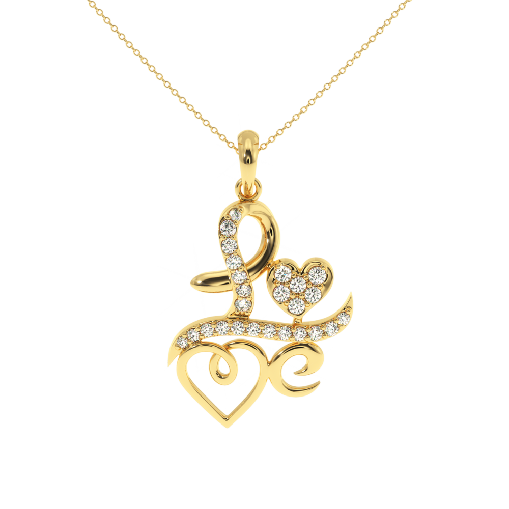 Pandantiv Love din aur de 14k, diamante de 0.24ct. Greutatea pandantului este de aproximativ 2.70 grame. Lungimea lantului este de 2cm.