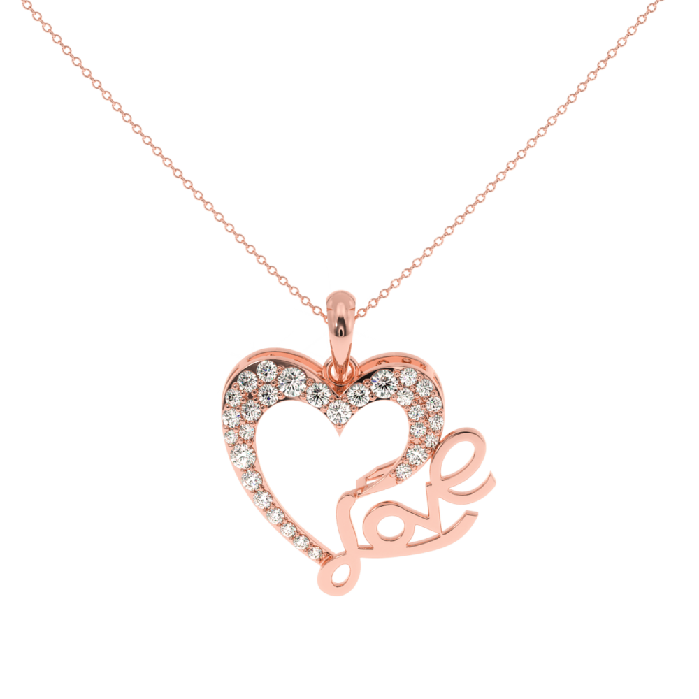 Pandantiv Love din aur de 14k, diamante de 0.247t. Greutatea pandantului este de aproximativ 2.70 grame. Lungimea lantului este de 1.60cm.   Accesati "SPECIFICATII" pentru mai multe detalii despre acest produs.