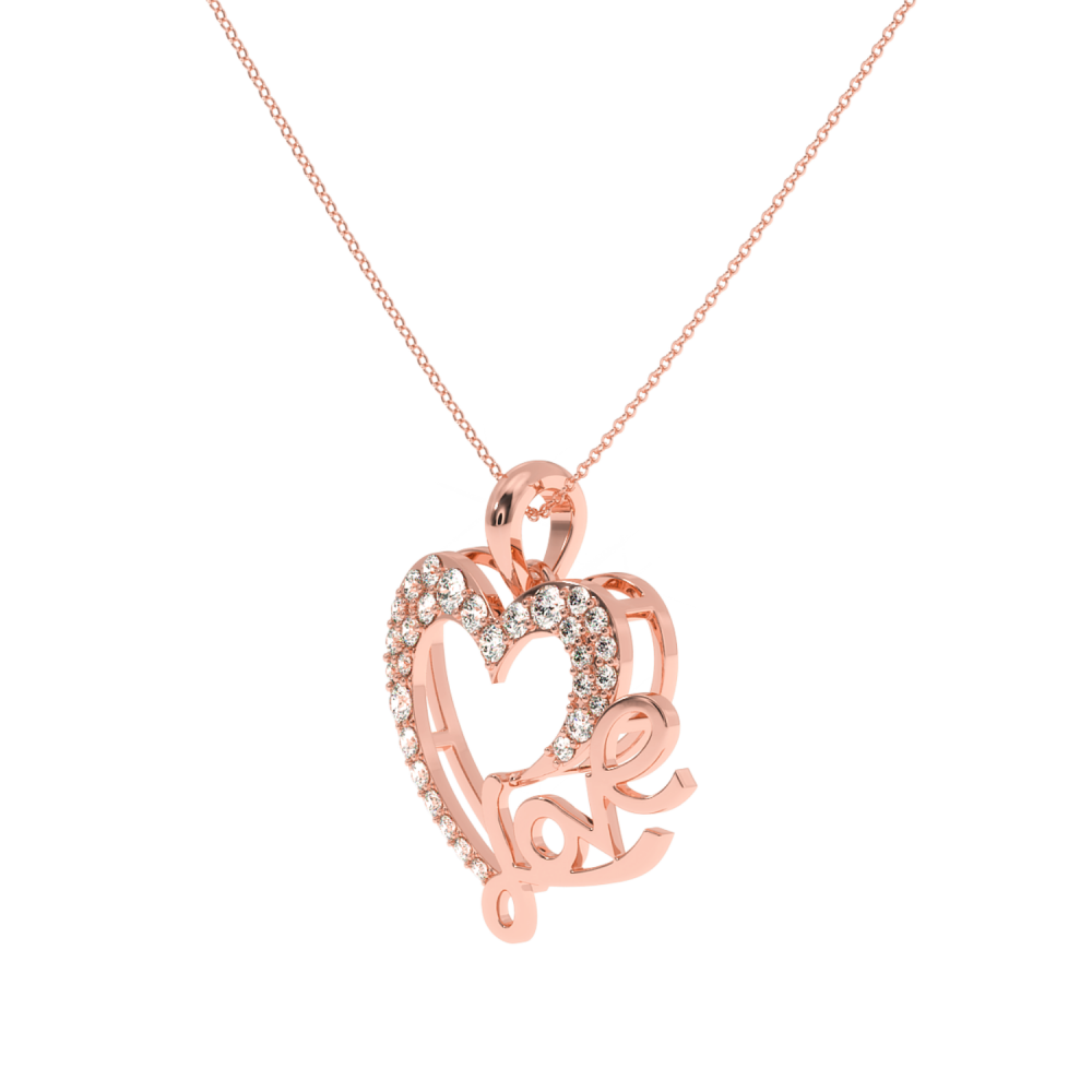 Pandantiv Love din aur de 14k, diamante de 0.247t. Greutatea pandantului este de aproximativ 2.70 grame. Lungimea lantului este de 1.60cm.