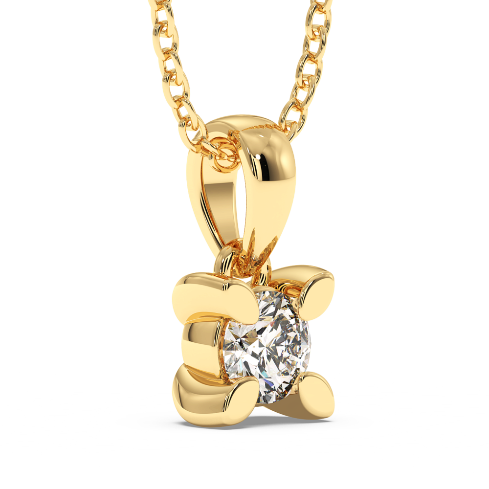 Pandantiv din aur alb de 14 K, cu diamant Solitaire de 0.20 ct. Greutatea colierului este de 1.38 grame.