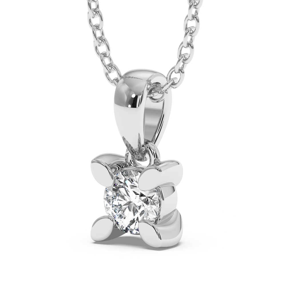 Pandantiv din aur alb de 14 K, cu diamant Solitaire de 0.21 ct. Greutatea colierului este de 1.97 grame.