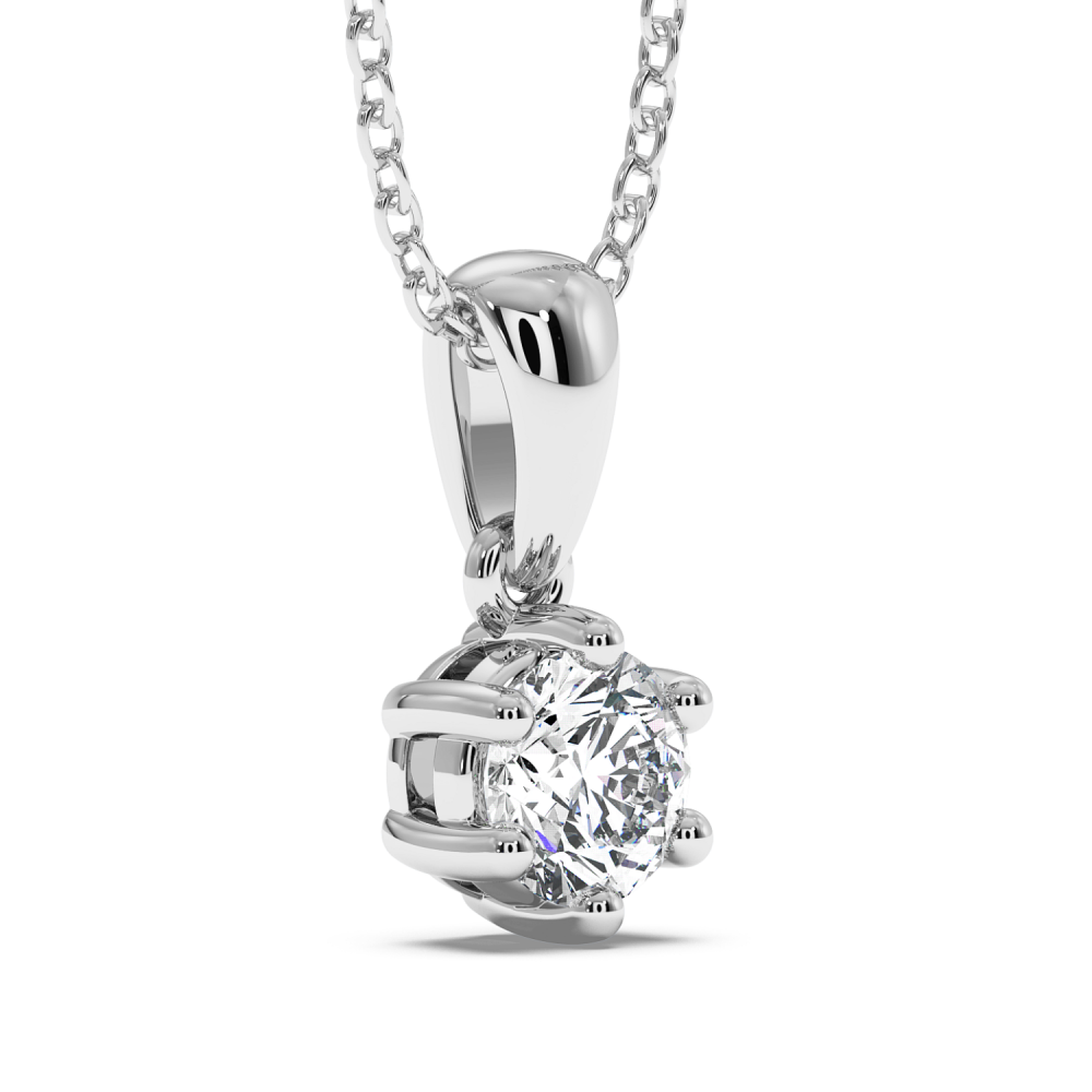 Pandantiv din aur alb de 14 K, cu diamant Solitaire de 0.29 ct. Greutatea colierului este de 2.03 grame.