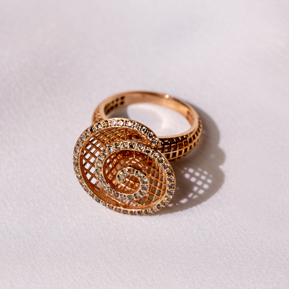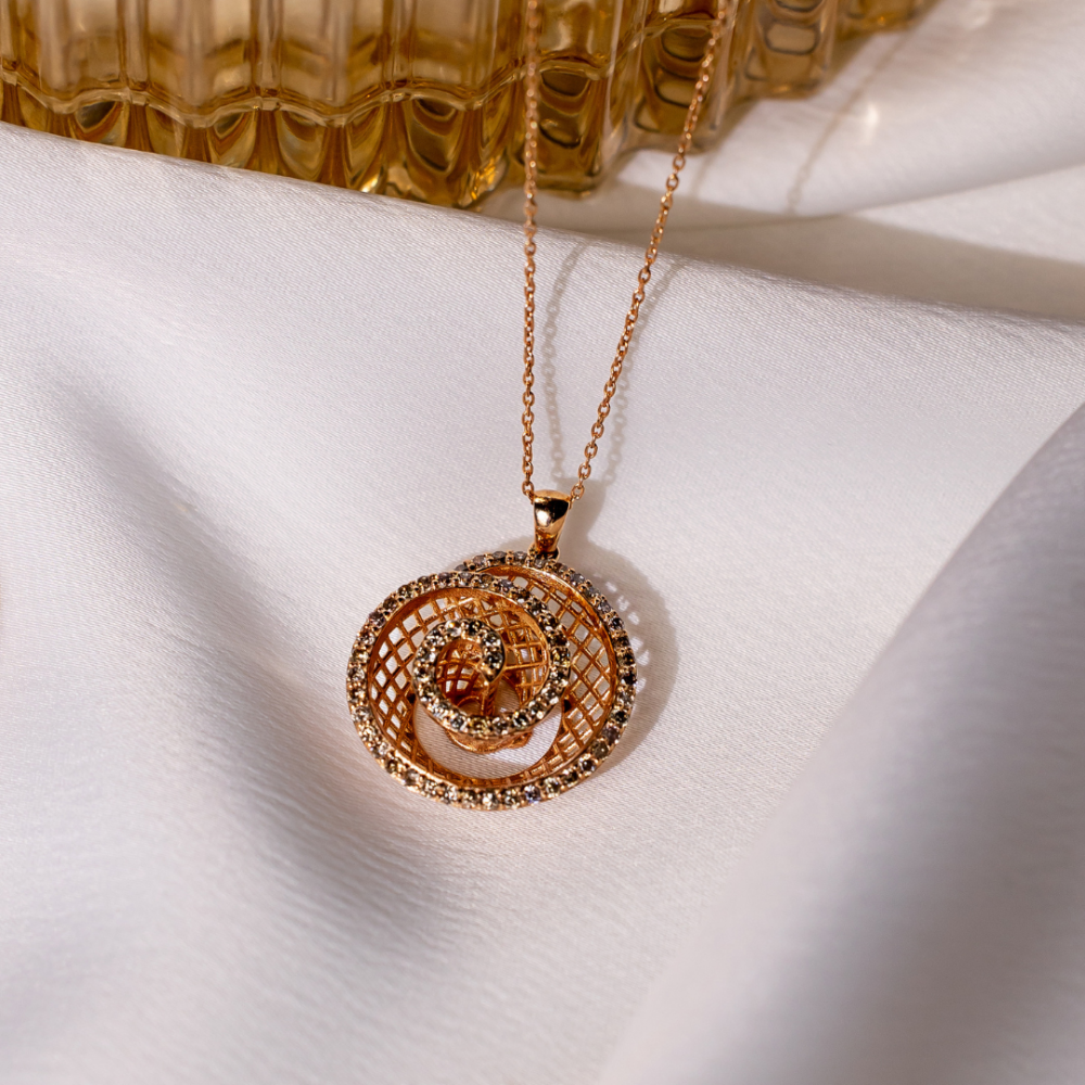Setul cu diamante brown, cuprinde: Colier , cercei si inel din aur rose de 18K si cu diamante Brown de 2.89 ct . Greutatea totala a setului este de 23.83 grame.