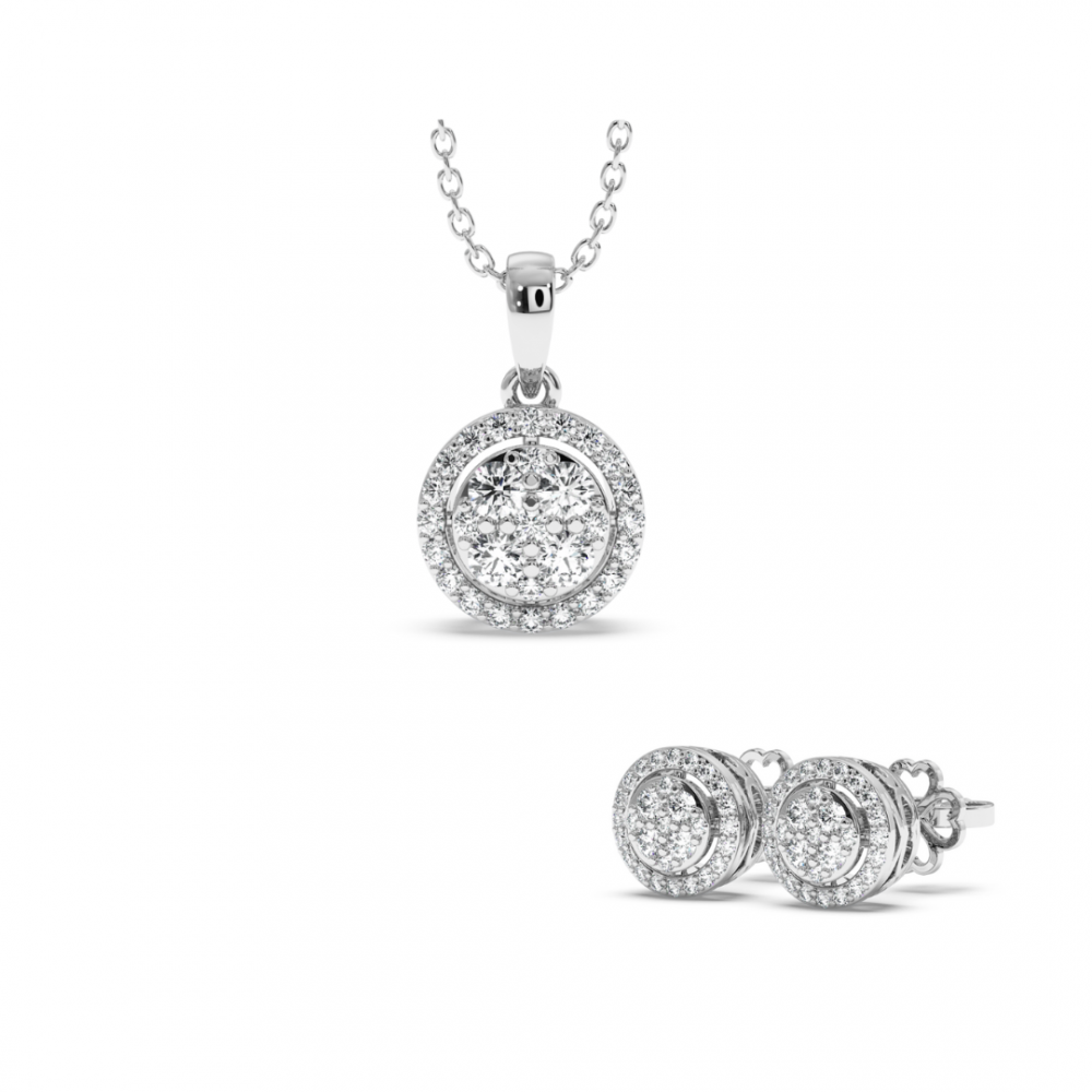 Setul cuprinde: Lant cu pandantiv si cercei din aur alb de 14K cu diamante de 0.71 ct . Greutatea totala a setului este de 5.20 grame.