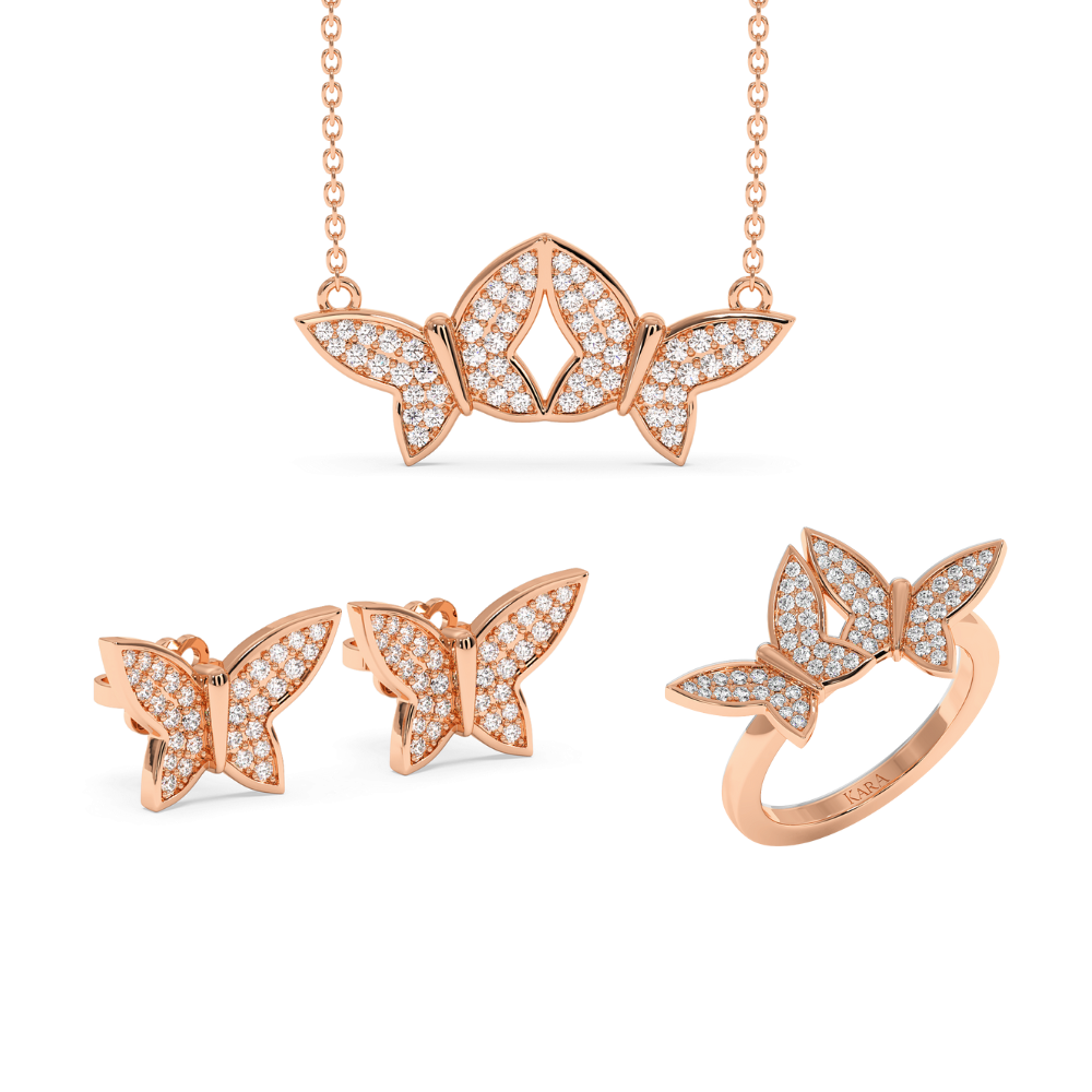 Setul cuprinde: Lant cu pandantiv din aur de 14K cu diamante de 0.32ct, cercei din aur de 14k cu diamante de 0.32ct si inel din aur de 14K cu diamante de 0.32ct . Greutatea totala a setului este de aproximativ 8.60 grame.