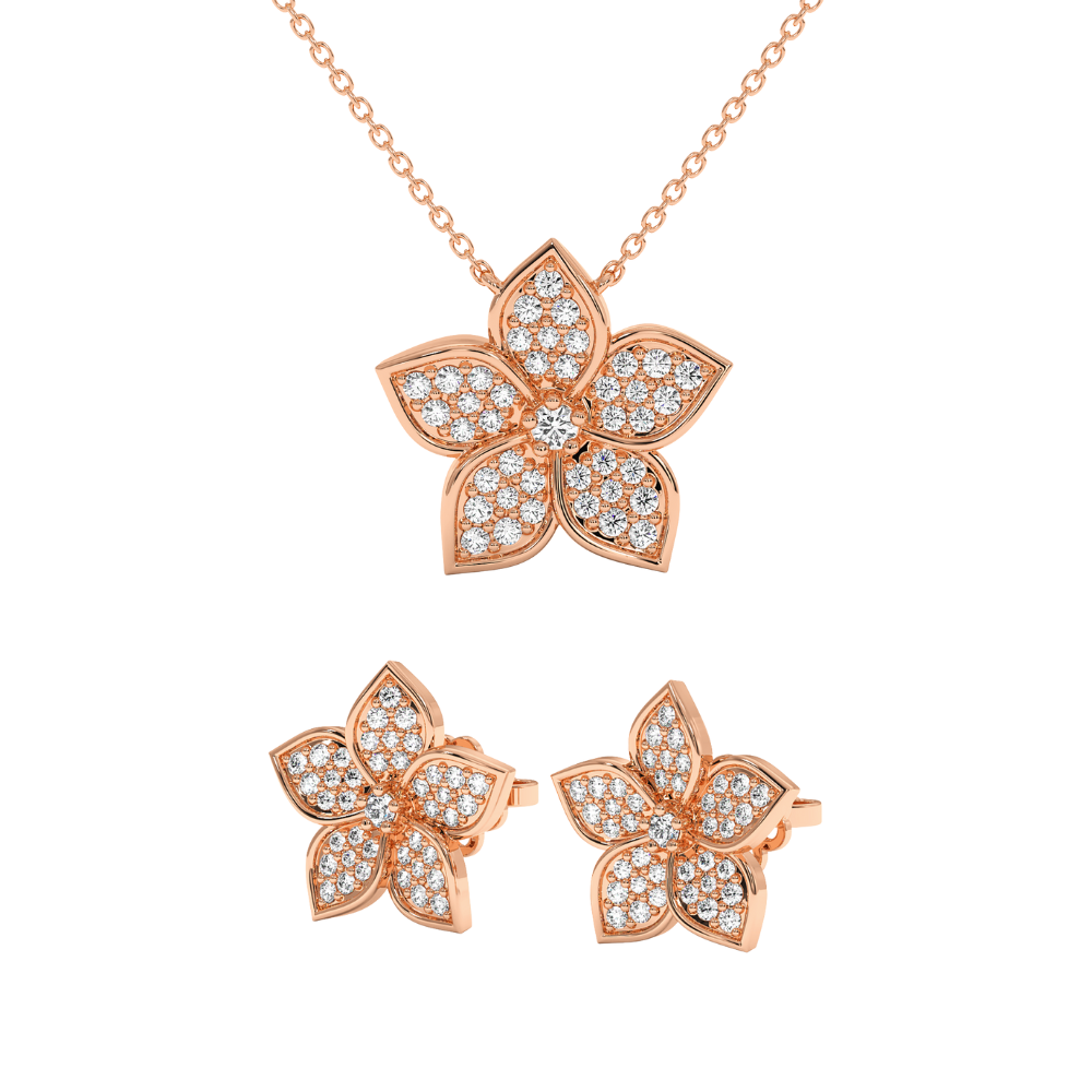 Setul cuprinde: Lant cu pandantiv din aur de 14K cu diamante de 0.50ct si cercei din aur de 14K cu diamante de 0.52ct. Greutatea totala a setului este de aproximativ 7.70 grame.