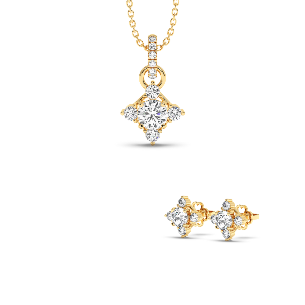 Setul cuprinde: Lant cu pandantiv si cercei din aur alb de 14K cu diamante de 1.20 ct . Greutatea totala a setului este de 4.87 grame.