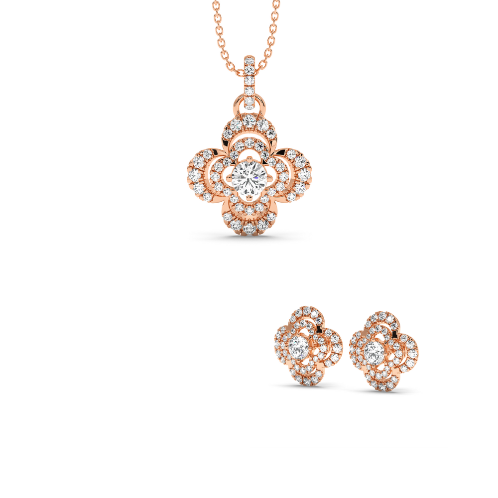 Setul cuprinde: Lant cu pandantiv si cercei din aur alb de 14K cu diamante de 1.93 ct . Greutatea totala a setului este de 7.26 grame.