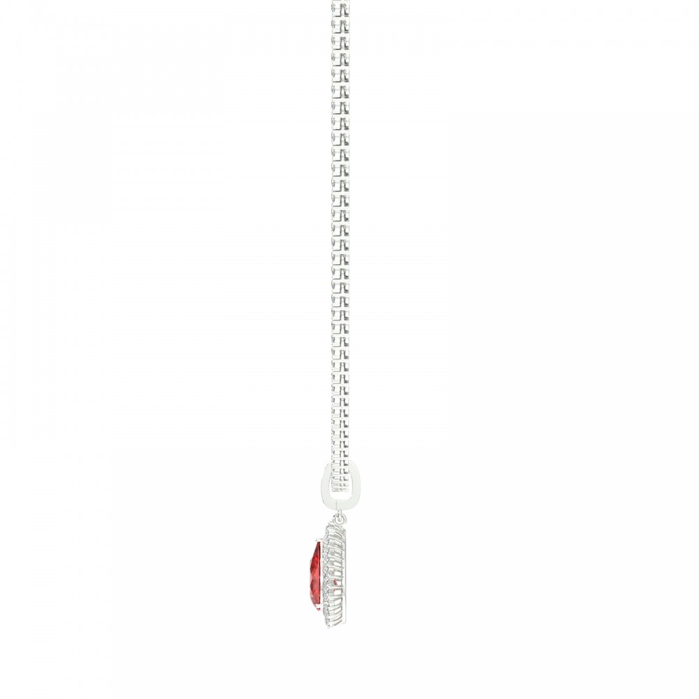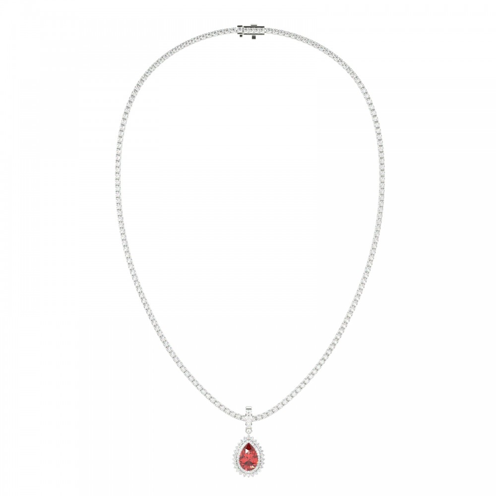 Charm pentru colierul tennis din aur alb de 14K, cu Rubin Pear Cut central de 4.08ct si diamante rotunde laterale de 0.61ct. Greutatea pandantului este de aproximativ 4.80 grame.