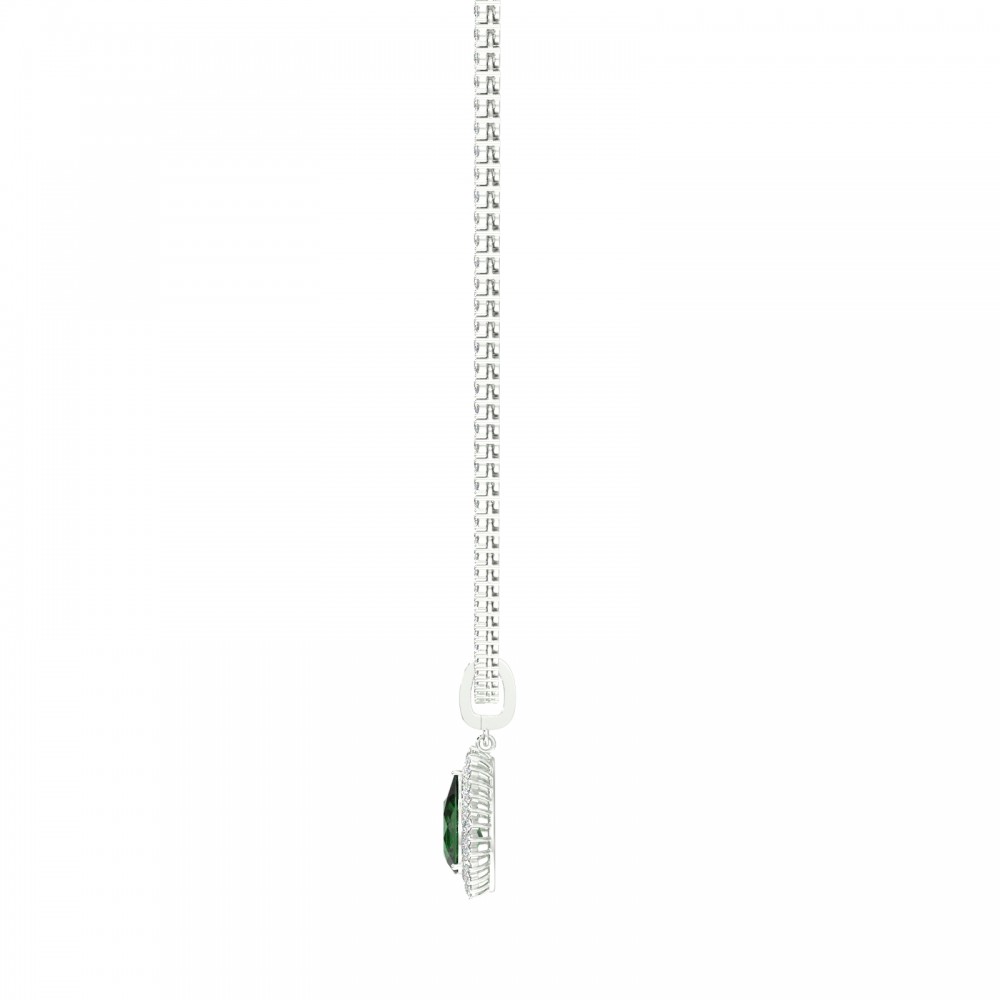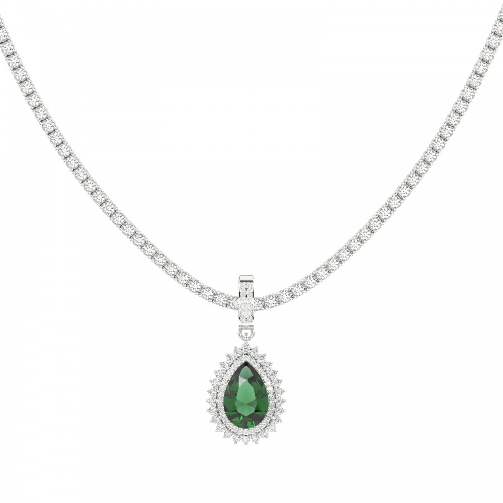 Charm pentru colierul tennis din aur alb de 14K, cu Smarald Pear Cut central de 4.08ct si diamante rotunde laterale de 0.61ct. Greutatea pandantului este de aproximativ 4.80 grame.